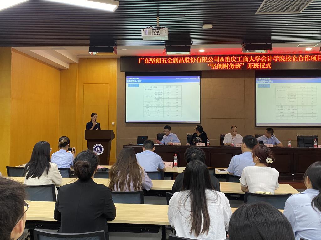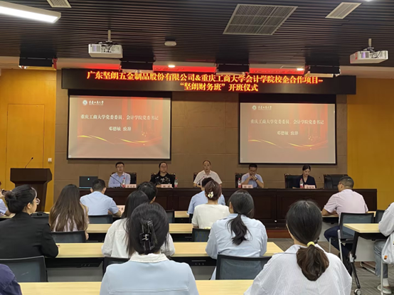 2023年9月22日,广东坚朗五金制品股份有限公司与公司校企合作项目“坚朗财务班”开班仪式暨开班第一课在南岸校区会议中心多功能厅室隆重举行。广东坚朗五金制品股份有限公司人力资源中心副总监顾翀、财务管理中心副总监唐楣艳、招聘管理部主管刘龙飞、招聘管理部校企主管钟广生、委书记邓德敏、bb贝博艾弗森官方网站副经理蒋水全、委副书记郝颖等,与“坚朗财务班”30名同学一起出席了开班仪式。开班仪式由bb贝博艾弗森官方网站副经理蒋水全主持。