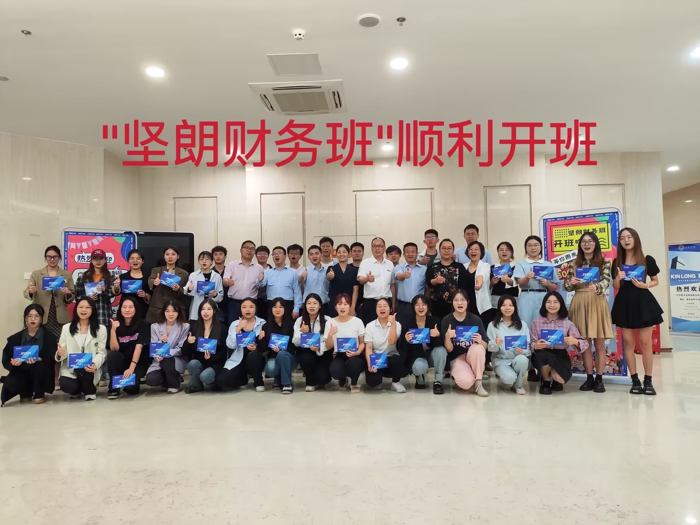 邓德敏宣布“坚朗财务班”成立并颁发录取通知书,与会成员合影留念。