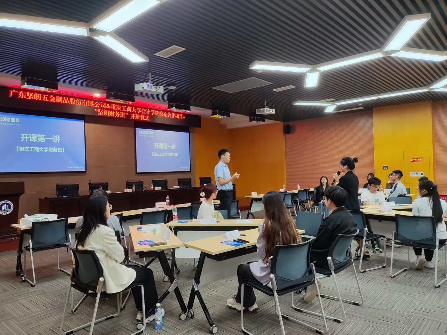开班仪式结束后,坚朗公司人力资源部老师与学员们进行“开班第一课”。同学们纷纷表示收获很大,对未来前途更有信心。据悉,“坚朗财务班”学员由21级财务管理、会计专业共计8个行政班员工遴选,将在一年时间内由企业团队围绕“企业认知”与“财务能力实操” 开展培训,并为优秀学子提供奖、助学金。