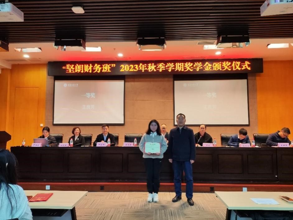 3月15日,广东坚朗五金制品股份有限公司在公司校企合作项目“坚朗财务班”设立的奖学金颁奖仪式在南岸校区会议中心多功能厅室隆重举行。广东坚朗五金制品股份有限公司大重庆销售区块副总经理尚志强、广东坚朗五金制品股份有限公司人力资源中心培训发展部讲师邓芳坤,委书记邓德敏、党委副书记郝颖、副经理蒋水全、财务系主任王世杰、合作与交流中心主任杜迎新与“坚朗财务班”同学一起出席了颁奖仪式。