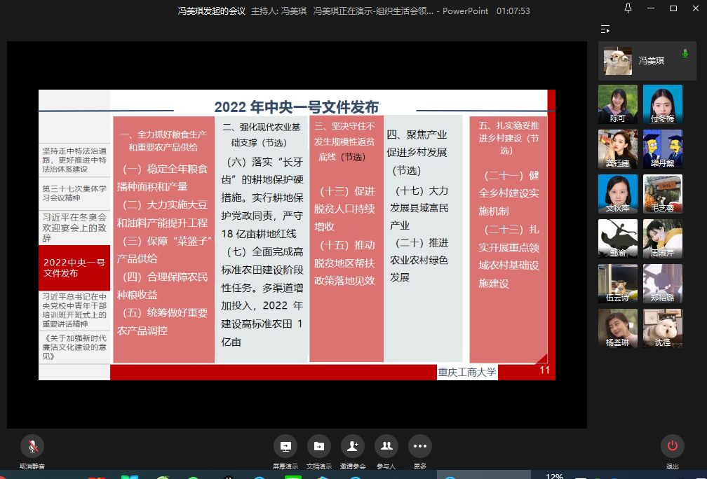 2022年3月22日中午,bb贝博艾弗森官方网站研究生第一党支部在明德楼2019会议室开展党员民主评议和三月组织生活会,支部全体党员通过线上和线下的方式参加了此次会议。