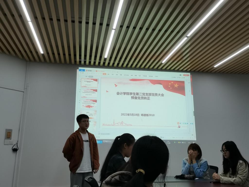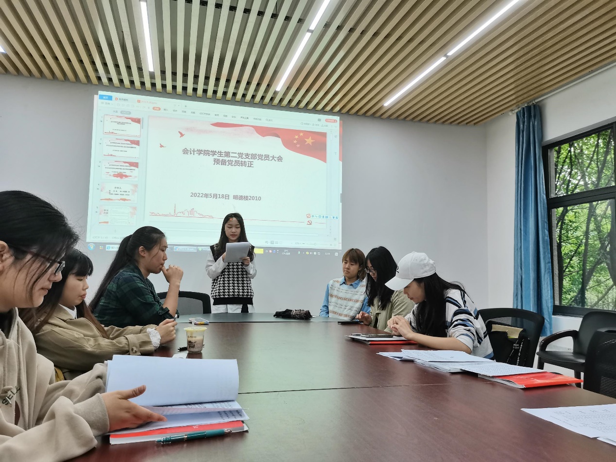 2022年5月18日,bb贝博艾弗森官方网站员工第二党支部在明德楼2010召开党员大会,讨论党员转正事宜,支部书记程洁老师主持会议。