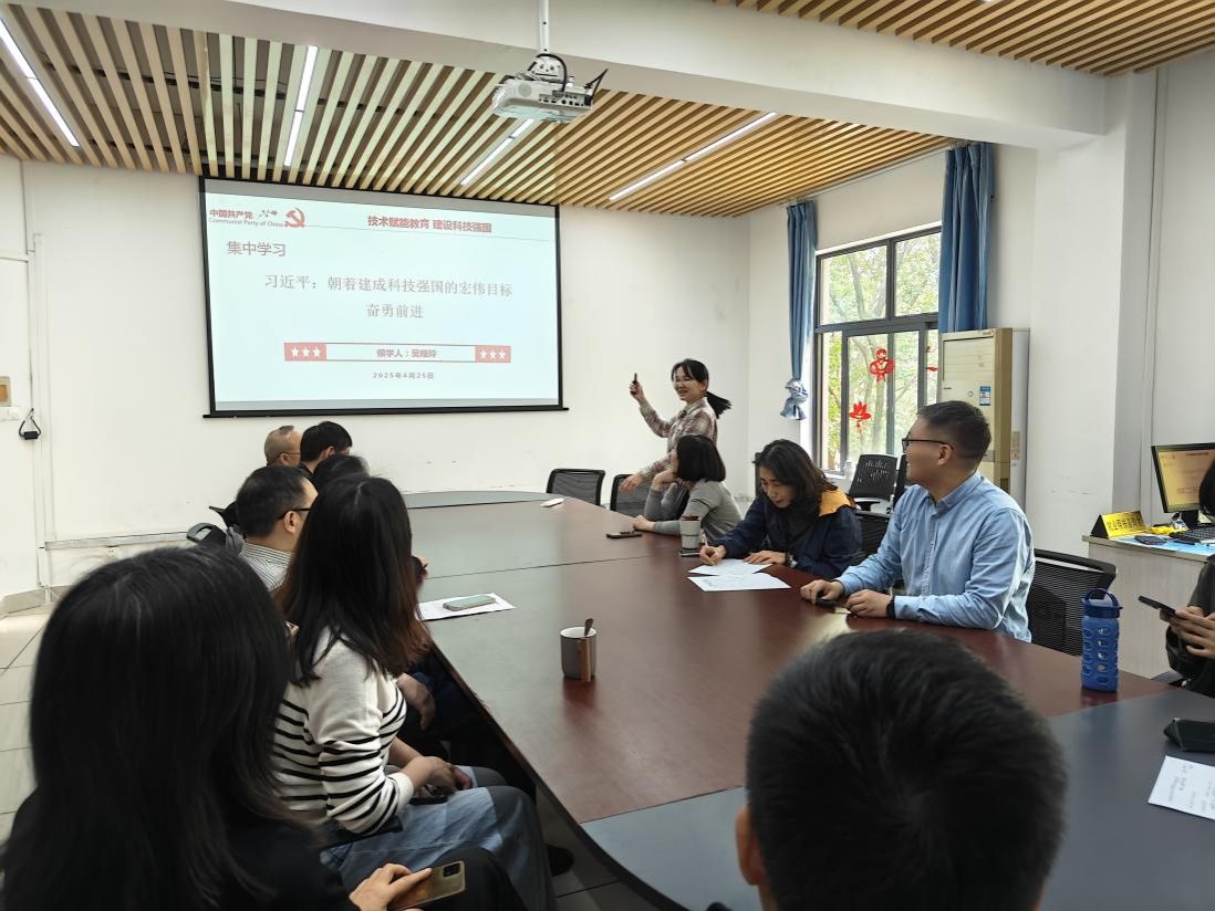 吴娅玲同志领学了《朝着建成科技强国的宏伟目标奋勇前进》重要文章。该文章是习近平总书记2024年6月24日在全国科技大会、国家科学技术奖励大会、两院院士大会上的重要讲话,2025年4月1日在《求是》杂志第7期发表。文章强调我们要建成的科技强国,拥有强大的高水平科技人才培养和集聚能力,不断壮大国际顶尖科技人才队伍和国家战略科技力量。强调在新时代背景下,教育工作者肩负着培养创新型人才、推动科技自立自强的使命担当。通过深入学习相关政策文件和前沿教育研究报告,教师们深刻认识到技术赋能教育不仅是教育现代化的必然要求,更是建设科技强国的关键环节。大家纷纷表示,要将科技元素融入日常教学,以创新驱动教育变革,为科技强国建设夯实人才根基。