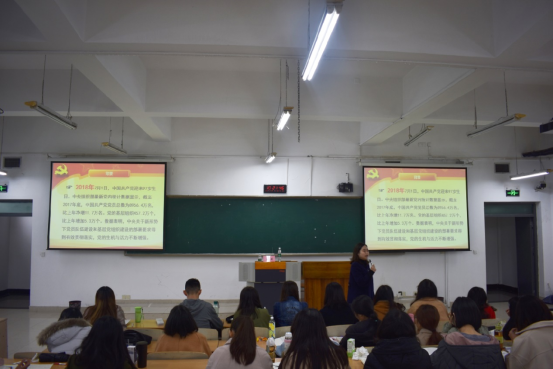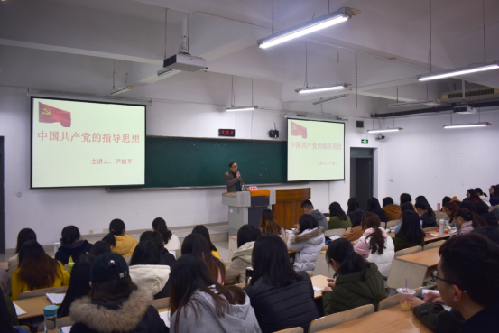 8点20分,党课培训正式开始。第一讲由尹建平副书记主讲,他从共产党的诞生、中国特色社会主义思想等方面介绍了中国共产党指导思想与时俱进的过程。尹副书记还强调了自我学习的重要性,希望学员以思想为行动的先导,不断提升自己。第二讲由王婷老师讲解共产党员的相关知识,她就对怎么才能做一名合格的党员这一问题与大家进行交流,并以热门的重庆公交车坠江事件为例提出了她的理解。她还讲解了十九大对党章的修改以及入党动机的不同表现,希望学员端正入党动机,以实际行动争取早日入党。