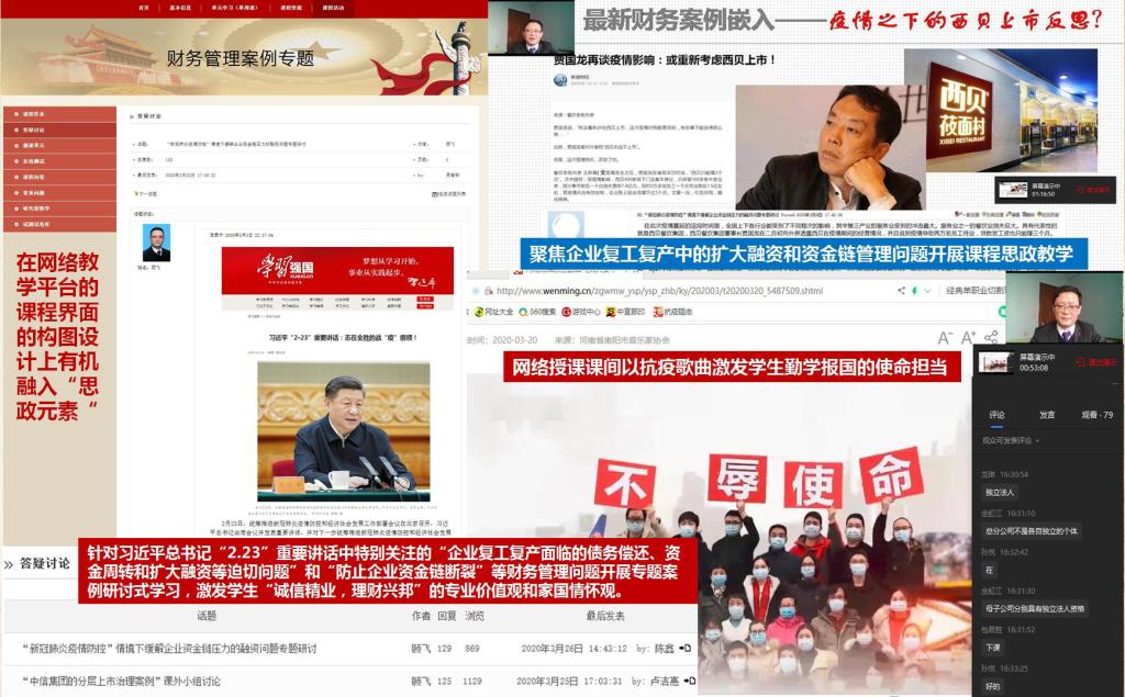 为了策划筹备好本次支部网络主题党日活动,bb贝博艾弗森官方网站教工二支部的支委们相继通过微信支委群和企业微信会议等方式开展了大量的前期策划准备工作。支部书记钟廷勇博士以及全体支委委员秉持“学习早一步、理解深一步、工作快一步”的理念,提前开展了对习近平总书记系列重要讲话精神的自我学习,并及时地将政治理论学习成果感悟结合所授专业课程的教学定位与教学内容有机融入到网络直播授课中,为学院广大党员教师在疫情防控网络教学期间开展好网络课程思政实践创新提供了教学示范,为进一步激发员工爱党爱国、勤学担当的家国情怀提供了更具现实感召力的课程思政价值引领。