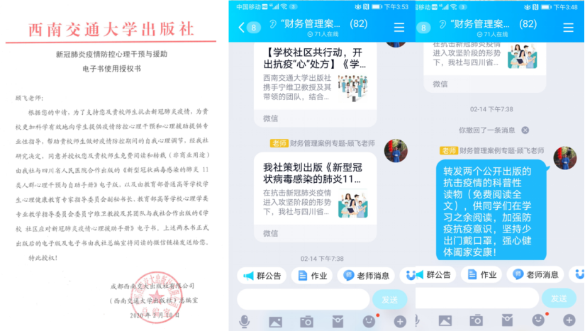 任课教师提前建立QQ教学群为员工提供公开出版的疫情防控心理援助免费电子书