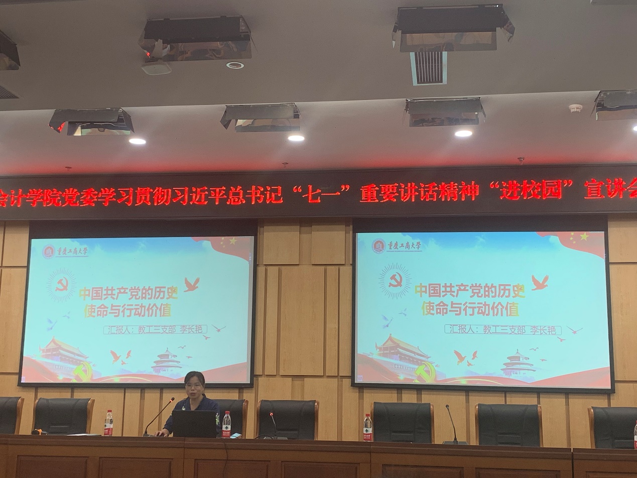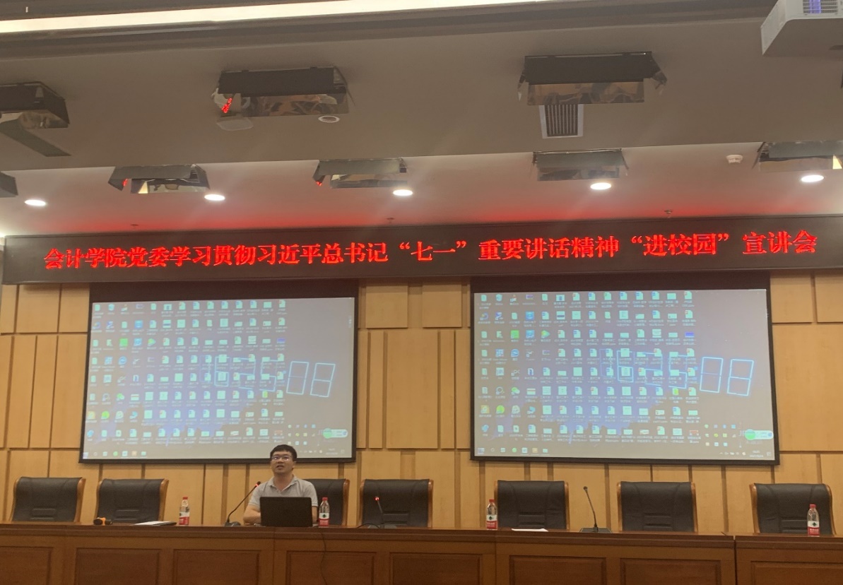 为了学习贯彻习近平总书记在庆祝中国共产党成立100周年大会上的重要讲话精神,激励学院凝心聚力推动学院高质量发展,9月24日下午,委在图书馆一号会议室面向全体党员教师开展了学习贯彻习近平总书记“七一”重要讲话精神“进校园”宣讲活动,专题党课分别由委书记罗惠玉、专职组织员石世明作学习分享。