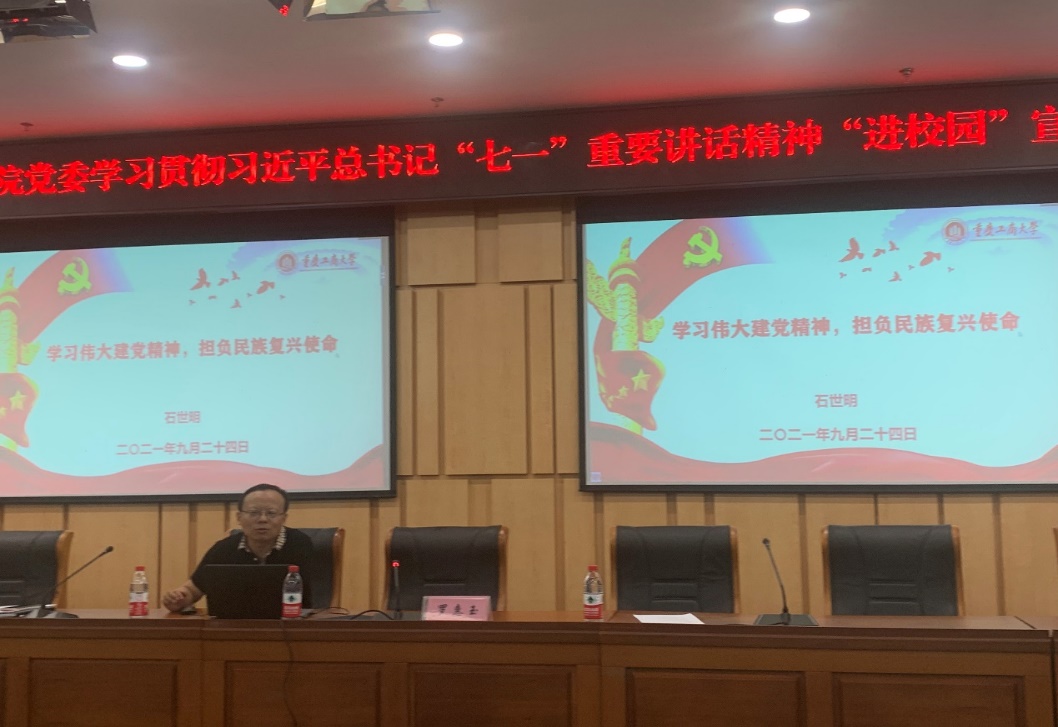 随后,bb贝博艾弗森官方网站专职组织员石世明同志作了题为“学习伟大建党精神,担负民族复兴使命“的主题报告。一百年前,中国共产党的先驱们创建了中国共产党,形成了坚持真理、坚守理想,践行初心、担当使命,不怕牺牲、英勇斗争,对党忠诚、不负人民的伟大建党精神,这是中国共产党的精神之源。石世明同志从伟大建党精神形成的基础和条件、伟大建党精神的深刻内涵、中国共产党人精神谱系等角度对伟大建党精神进行深入讲解。随后,站在高等教育工作者的角度,他指出:“立德树人,培养民族复兴大任的时代新人”是高校教师的使命,我们要坚持铸魂育人,全面落实立德树人的根本任务,落实”三全育人,做好课程思政和思政课程“同向发力”。此外,石世明同志还领学了《第27次全国高公司党建会议精神》和《重庆市高公司党的建设工作会议》两个重要文件。