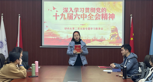 12月5日中午,bb贝博艾弗森官方网站研究生第二党支部在明德楼2019会议室开展了围绕党的十九届六中全会主题的专题学习教育会,会议由支部书记王婷主持。