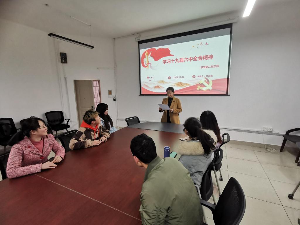 12月29日上午,bb贝博艾弗森官方网站员工第二党支部在明德楼2010会议室开展十九届六中全会精神专题学习会,会议由支部书记付海南主持。