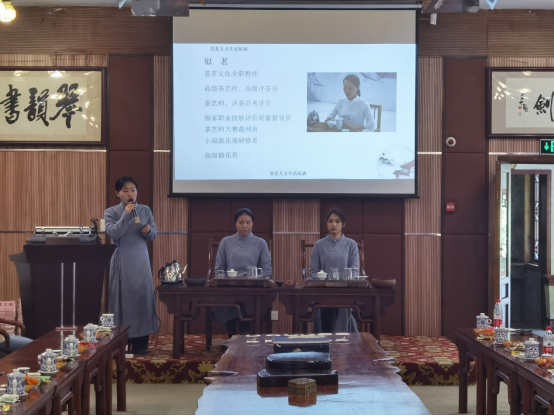 接下来,专业的茶艺师们为大家讲解有关茶的知识,从茶的起源传播和发展过程,到茶的分类以及各类茶叶的特征、冲泡时的注意事项,以及茶的礼仪等等,他们都一一讲解。茶艺师们与大家分享了六大茶系代表茶种,现场展示了各类茶的冲泡过程,并邀请老师们品尝,各位老师还亲自体验了茶艺的乐趣。