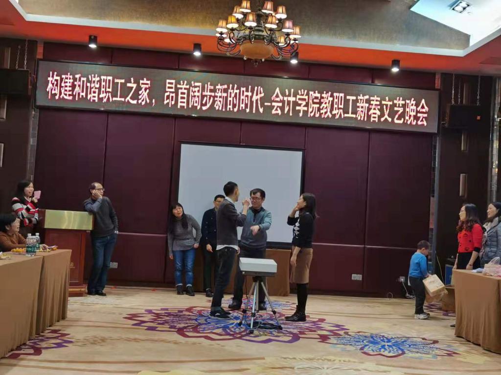 晚会开始,bb贝博艾弗森官方网站全体党政领导带来了精彩的“三句半”表演。随后,bb贝博艾弗森官方网站工会主席刘斌老师宣读了《关于表彰bb贝博艾弗森官方网站2019年“工会积极分子”的决定》,并由bb贝博艾弗森官方网站分党委罗惠玉书记为获奖者颁奖。