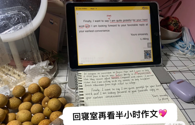 面对压力,胡蝶选择去运动和多沟通。上半年除了上课,备考,基本上一周去四五次健身房,去跳跳绳,练练器械,到暑假一周只去两三次健身房,然后到九月开始就不去健身房,时间太紧迫了,专心冲刺,但也可以适当运动,如去操场跑跑步,跳跳绳。都非常有利于放松心情,助睡眠和激活大脑。遇到压力和困难也可以和研友或者家人朋友沟通,不要自己闷在心里,会很难受的。此外,保持良好的心态非常重要!良好的心态来自于前期的付出,前期基础打扎实了,数学英语这些做起来就没那么难,后期任务虽然繁重,但是可以又快又准确地完成任务,自然不会学崩溃。