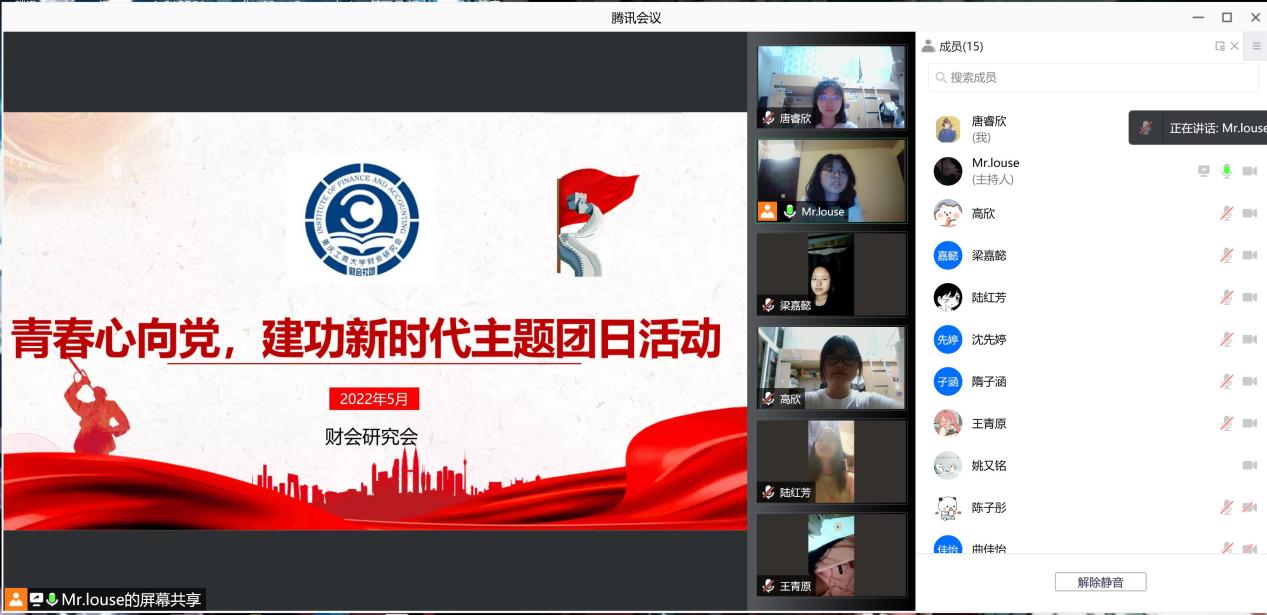 为纪念中国共产主义青年团成立一百周年、深入贯彻落实习近平总书记在党的一百周年大会上关于新时代青年新的时代任务和使命,ballbet贝博官方网站财会研究会于5月12日举办了社团团日活动。为了落实防控疫情的要求,本次团日活动通过腾讯会议线上开展。
