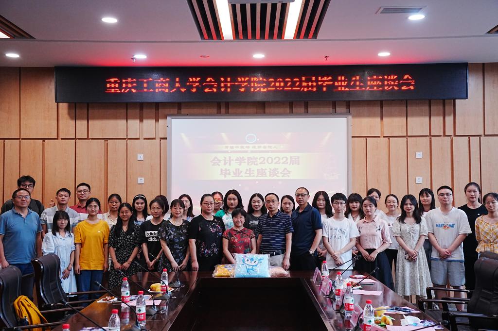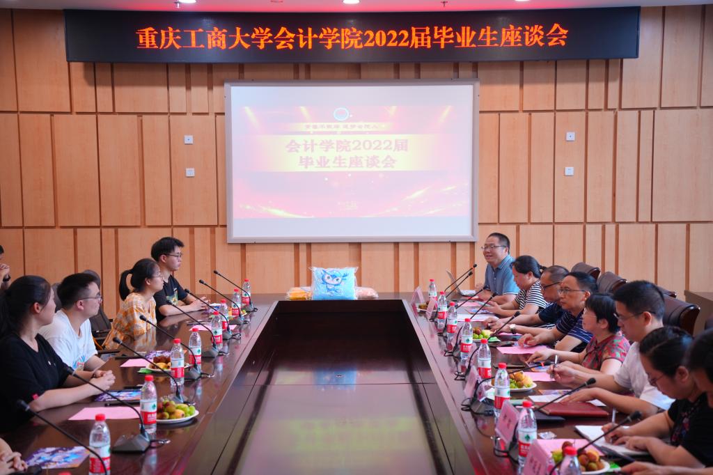 2022年6月22日下午2:00,bb贝博艾弗森官方网站2022届毕业生座谈会在南岸校区图书馆第五会议室举行。委书记罗惠玉、经理罗勇、党委副书记郝颖、副经理黄辉、副经理钟廷勇、毕业班辅导员付海南、吴淑珍、程洁、张海涛、吴金珂和24名本硕毕业生代表参加了座谈会,座谈会由学工办主任彭文涛主持。