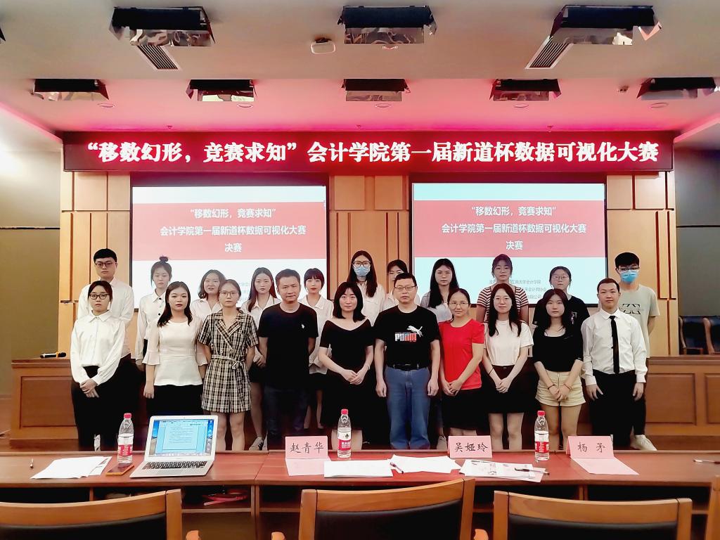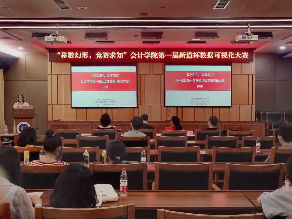 2022年6月17日,由ballbet贝博官方网站未来会计师协会承办,新道云科技协办的“移数幻形,竞赛求知”第一届新道杯数据可视化大赛决赛于图书馆第一会议室成功举办。bb贝博艾弗森官方网站吴娅玲老师、赵青华老师、杨矛老师和新道科技股份有限公司重庆市市场总监张野女士莅临了活动现场。本次大赛围绕财务可视化,帮助同学们锻炼数据分析能力和“数字化能力”,更好适应未来职场需求,有七支队伍通过初赛入决赛。
