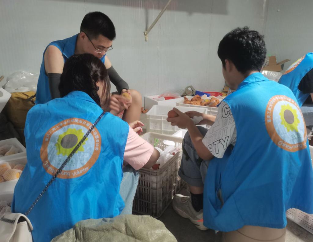 摘黄桃——bb贝博艾弗森官方网站向日葵青队发展成就观察团、慈众社工进入黄金林村“十里花果长廊”桃林,现场帮助黄金林村“民之丰”合作社采收黄桃。黄金林村的黄桃产业分为认领果树和现场采摘两门主要业务。其中认领黄桃果树是以298元的价格买下一棵果树供成熟期采摘,保底有40斤的黄桃,不够用库房的黄桃进行填补。采摘则是以10元一斤的价格购买。摘黄桃现场,辛苦劳作的村民留下的是辛勤的汗水,露出的是满意开怀的笑容。发展成就团成员拍下一幕幕会心的笑容,“晒”出丰收成果,宣传推广黄金林村本土的优质农产品,扩大农产品销路,促进村民增收。