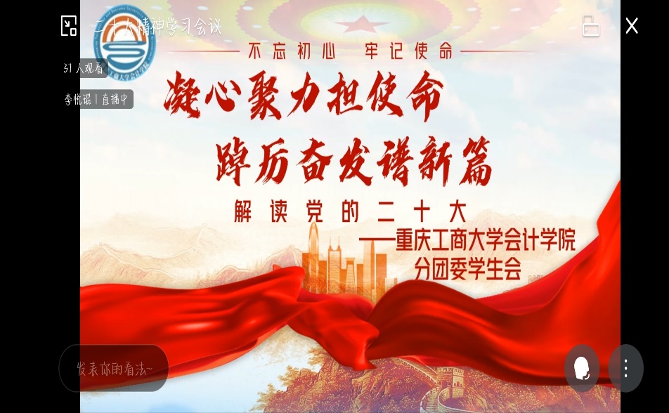 为深入学习贯彻落实党的二十大精神, 11月11日,在做好疫情防控要求的前提下,bb贝博艾弗森官方网站分团委员工会组织学院青年员工开展了二十大线上专题学习会。
