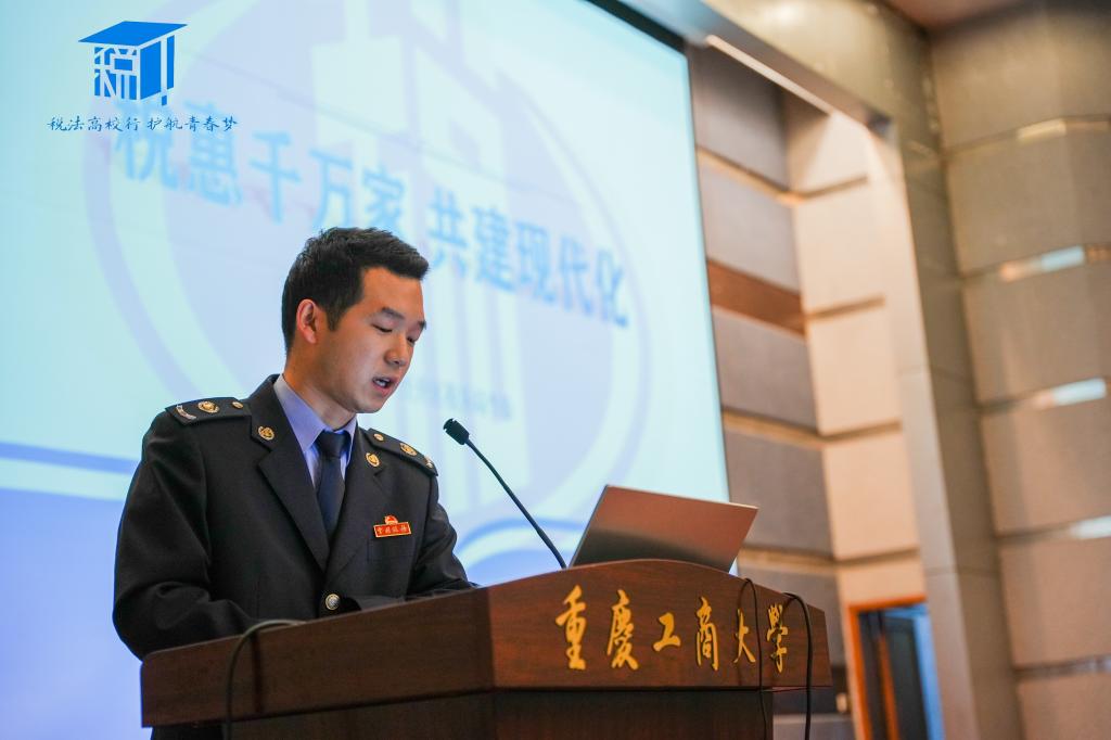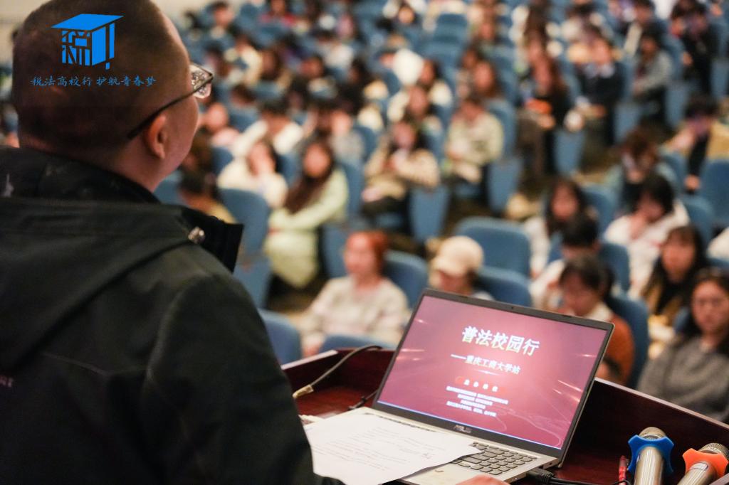 2023年4月7日下午,“普法校园行-ballbet贝博官方网站站”主题讲座于博智楼7100顺利举行。本次讲座由重庆市税务局第五稽查局、重庆市南岸区税务局、重庆市经开区税务局、重庆市公安局南岸区分局、共青团南岸区委员会以及ballbet贝博官方网站保卫处、员工处、bb贝博艾弗森官方网站联合主办,由第五稽查局何华、经开区税务局李珍、南岸区公安局盖洪担任主讲。ballbet贝博官方网站党委保卫处曹晓丽副部长、bb贝博艾弗森官方网站400余名本硕员工参加。讲座由bb贝博艾弗森官方网站学工办主任彭文涛老师主持。