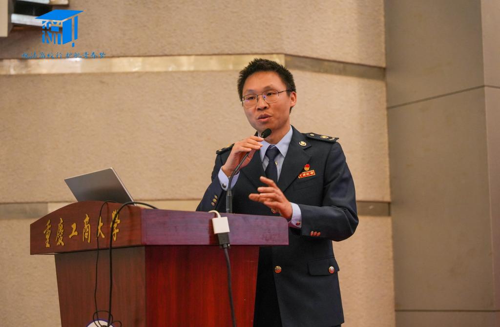最后,重庆市公安局南岸分局南坪镇派出所、反诈支队金牌讲师盖洪警官以“识别虚假身份,慎防各类诈骗”为主题进行了反诈骗宣讲。盖警官举了多个电信诈骗案例,生动形象地向员工们介绍了通讯网络诈骗及其特点,揭示了通讯网络诈骗发展很迅速、手段更新快、非接触性、跨国跨境突出等特点。此外,宣讲过程中,盖警官还调动同学们进行问答互动,提高了同学们对本次宣讲的参与度和对常见诈骗情境的警觉性。