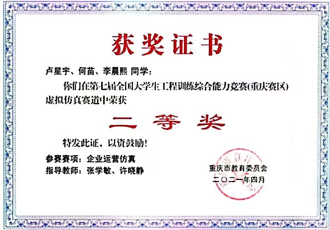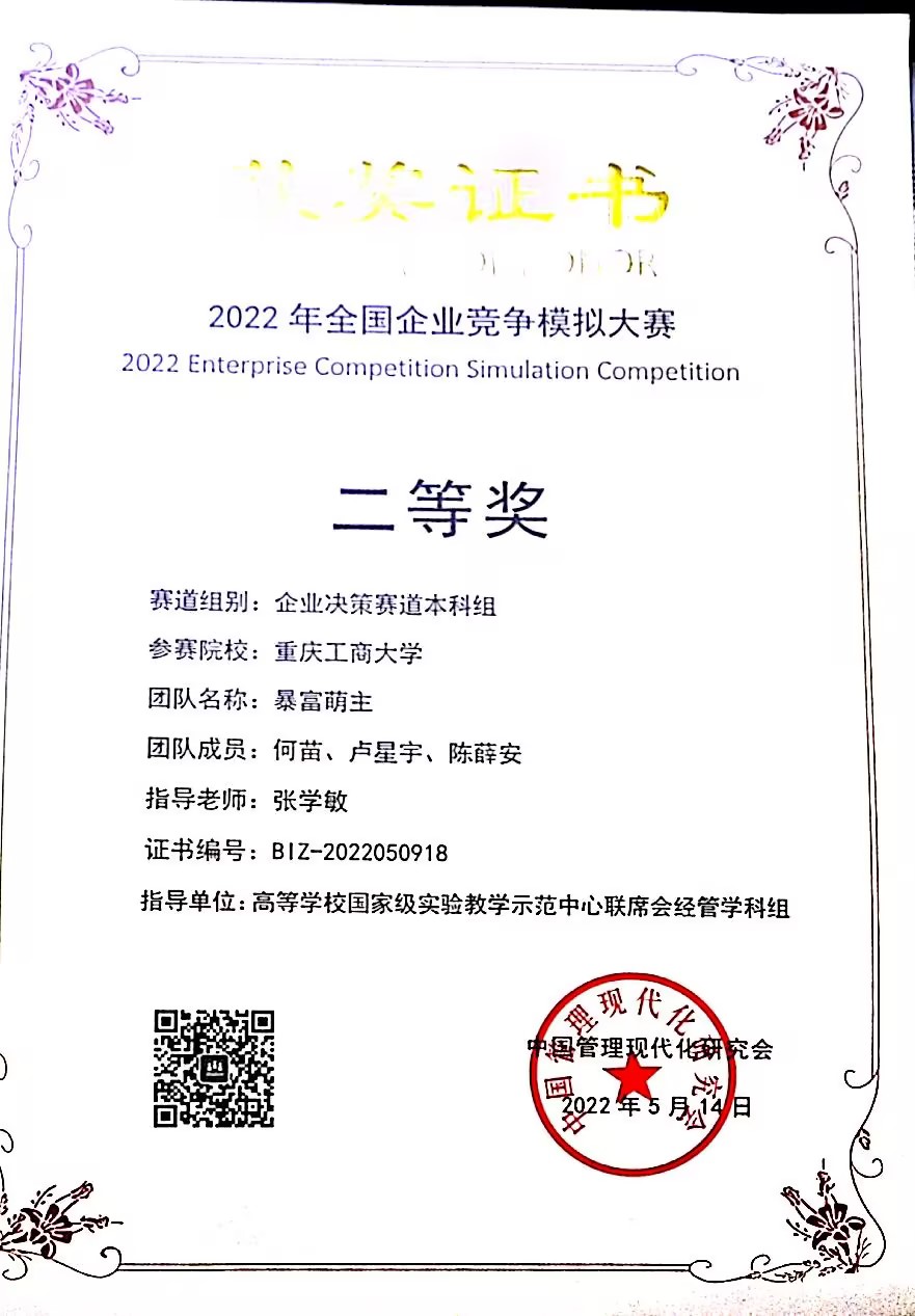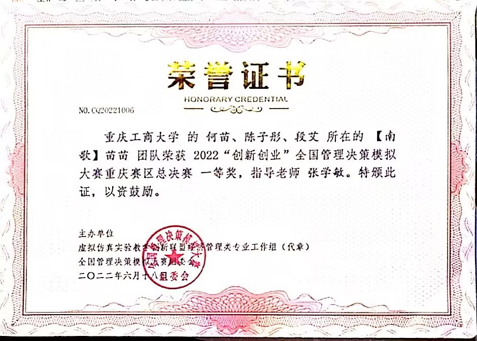 何苗,bb贝博艾弗森官方网站2020级财务管理一班员工,ERP员工俱乐部会长,平均学年绩点:4.1,荣获2022年会计之星—科创之星称号。入校以来,荣获国家奖学金、全国企业竞争模拟大赛二等奖、全国管理决策模拟大赛二等奖等7项国家级奖项;第九届海峡两岸老员工职业技能大赛一等奖、第七届全国老员工工程训练综合能力竞赛(重庆赛区)二等奖、全国老员工数学竞赛三等奖等8项省级奖项;综合一等奖学金、优秀员工等20余项校级奖项以及征文比赛二等奖等院级奖项。