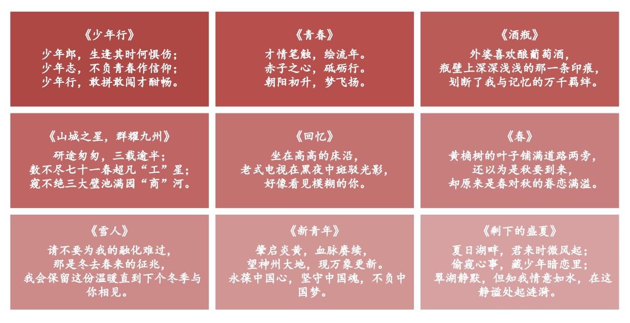 参赛选手通过诗歌传递亲情、友情、爱情以及感恩之情,抒发爱党、爱国、爱校等真情实感。此次三行诗活动扩大了诗歌的影响力和号召力,引导员工发现生活的美,激发对生活的热情,营造校园良好的文化氛围。