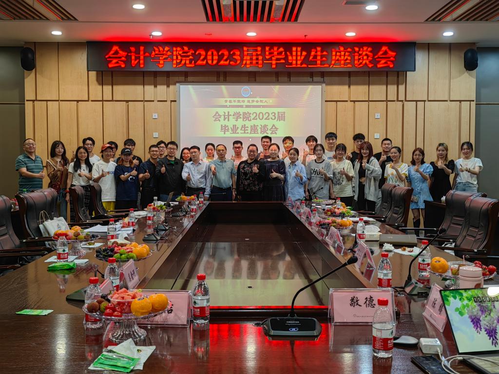 与会师生合影留念,为毕业生座谈会、也为bb贝博艾弗森官方网站2023届毕业生代表在重工商大的求员工涯画上了圆满句号。