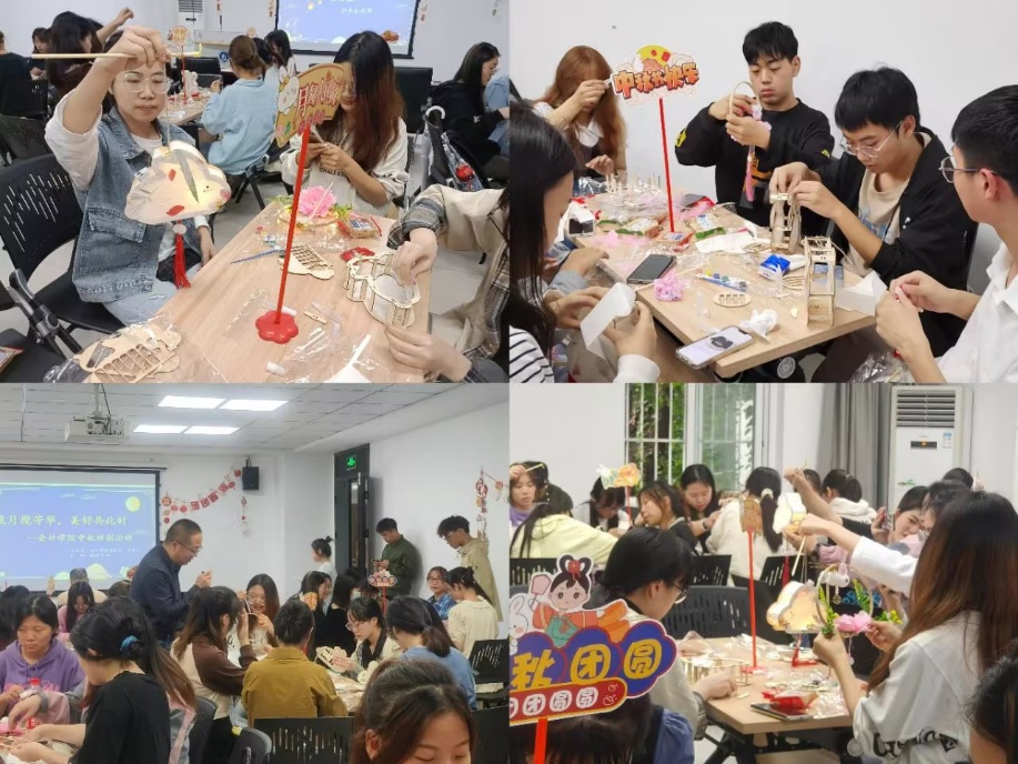 本次中秋活动共设计了慧眼识灯谜、诗意迎中秋、妙手生彩华三个环节,通过emoji猜灯谜、诗词九宫格、飞花令等多种游戏方式,让同学们在轻松有趣的氛围中传承传统文化,现场气氛活跃,掌声喝彩不断,大家热情高涨。“妙手生彩华”环节,同学们相互配合,共同完成手工灯笼制作。盏盏花灯,不仅拉近了同学之间的距离,还饱含着对家人、朋友的美好祝愿。