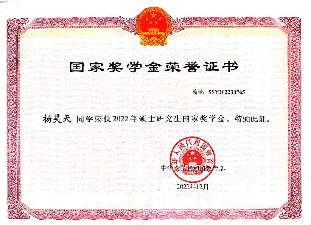 杨昊天,来自20级会计硕士班,国家奖学金获得者
