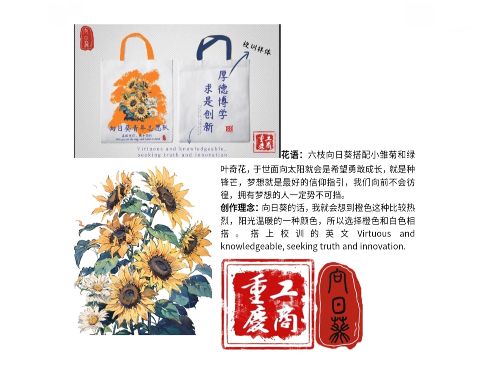 评审团根据评分细则综合遴选出一等奖13名,二等奖26名,三等奖39名。选手们的参赛作品整体上呈现出青年队“向阳而生”的青春活力。其中,一等奖获得者周晨同学的作品展示了六枝向日葵向阳而生,并将ballbet贝博官方网站“厚德博学,求是创新”的校训融入作品中,她还在作品中提到:我们梦想的力量势不可当,只有怀揣着希望向梦想奔跑时,以梦想为指引,才不会在未来的人生旅途中感到彷徨。志愿队伍正在不断地壮大,也有越来越多向日葵般的志愿者心怀梦想,在社会中以温暖无私的大爱传递着无限的希望。