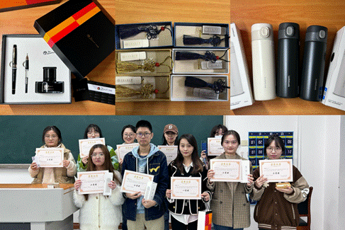 为保证知识竞赛考试的公平公正、维护考场秩序,监考人员于正式开考前宣读了考试规则,强调了考试需遵守的纪律。考场上,同学们严格按照考试要求参与比赛,此次比赛总共为前十位同学颁发了奖状和相应的奖品,分别为一等奖2名,二等奖3名,三等奖5名。