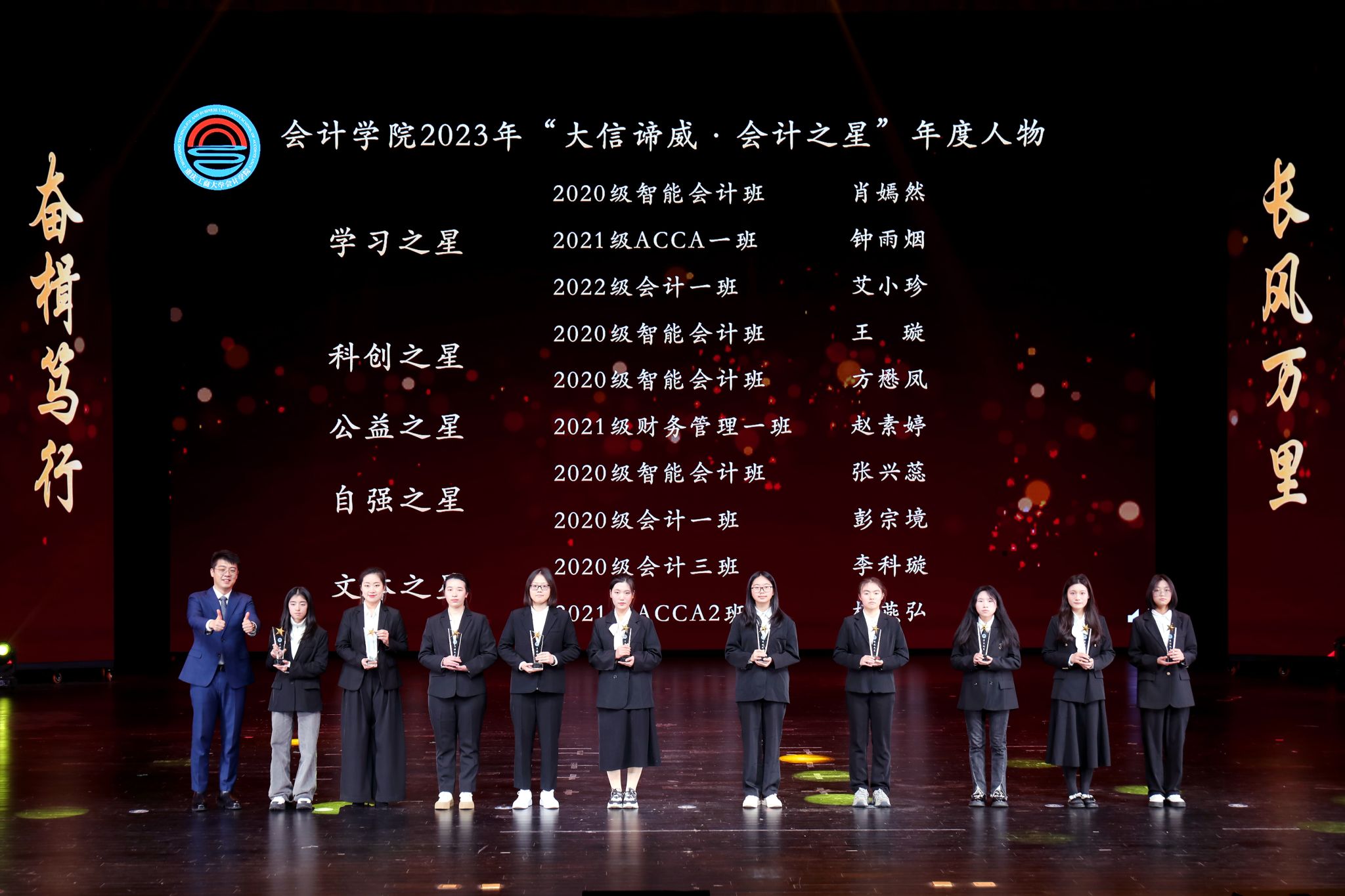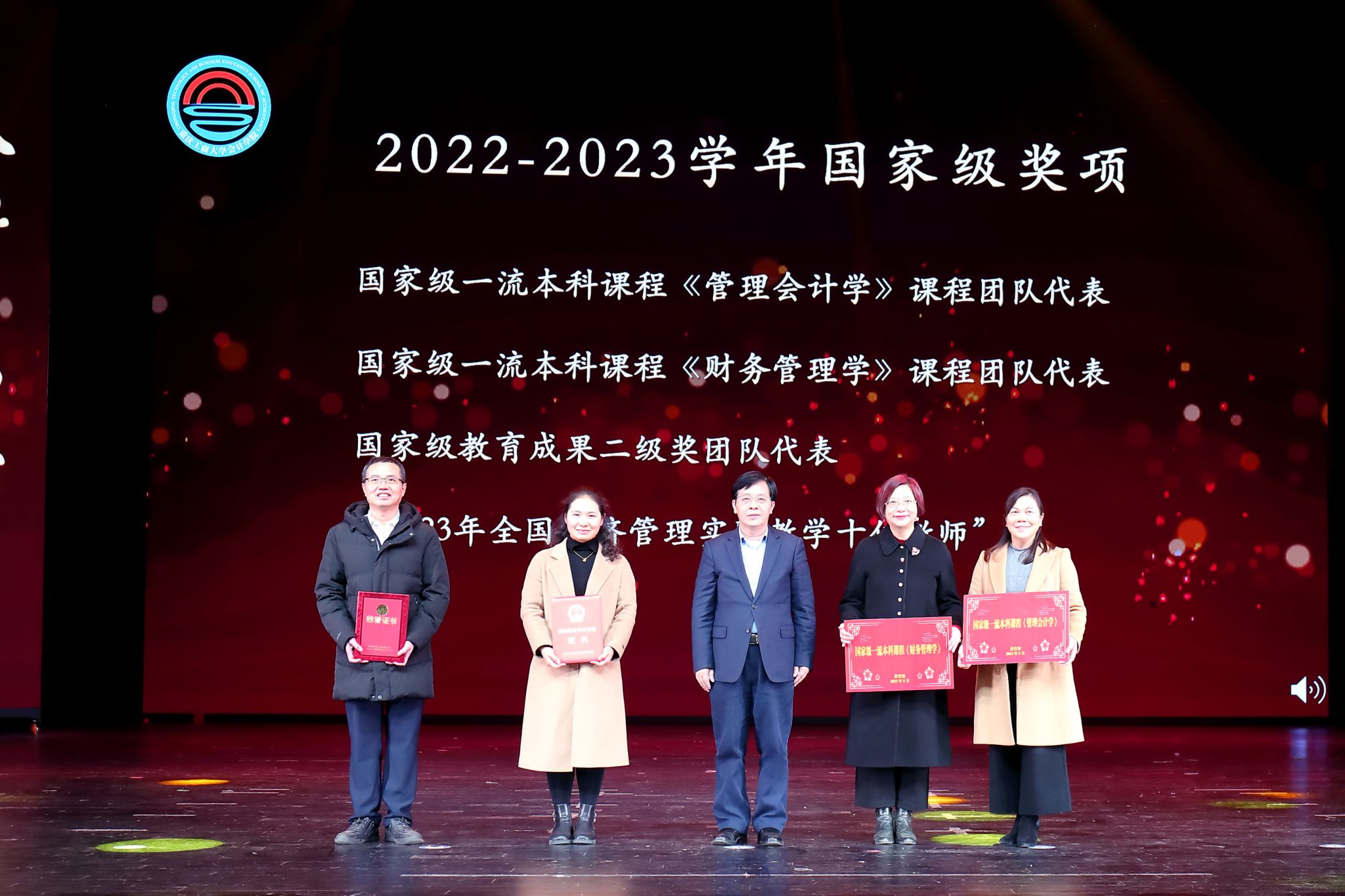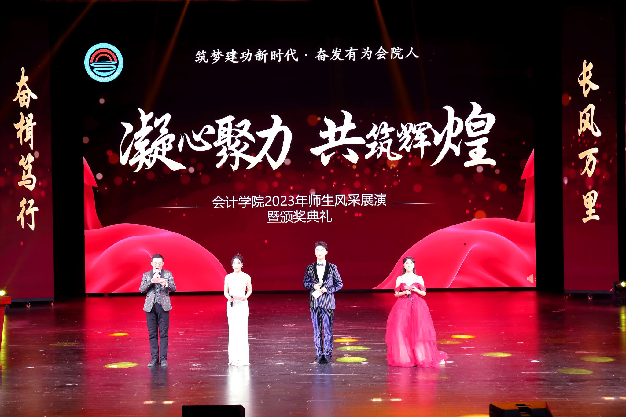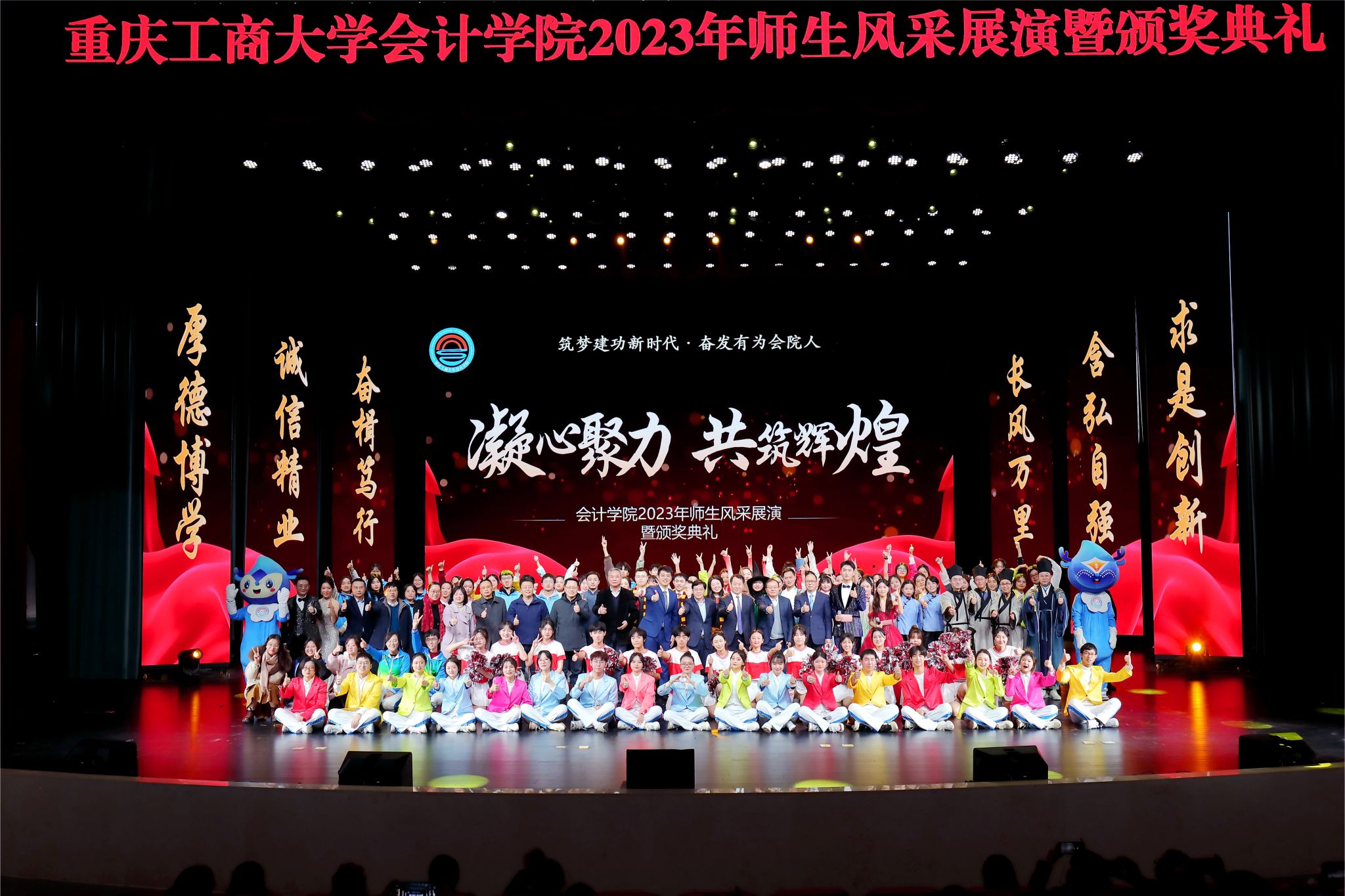 2023年12月22日下午,bb贝博艾弗森官方网站在ballbet贝博官方网站剧院隆重举行2023年师生风采展演暨颁奖典礼。本次活动以“筑梦建功新时代·奋发有为会院人”为主题。ballbet贝博官方网站党委书记曾维伦、副董事长李国军以及党政办公室、学工部、教务处、校团委负责人,bb贝博艾弗森官方网站全体师生、退休教师代表,学院合作企业天健会计师事务所重庆分所、大信会计师事务所重庆分所负责人等近千人参加了活动。典礼由吴年年、顾飞、石青灵、张洲主持。