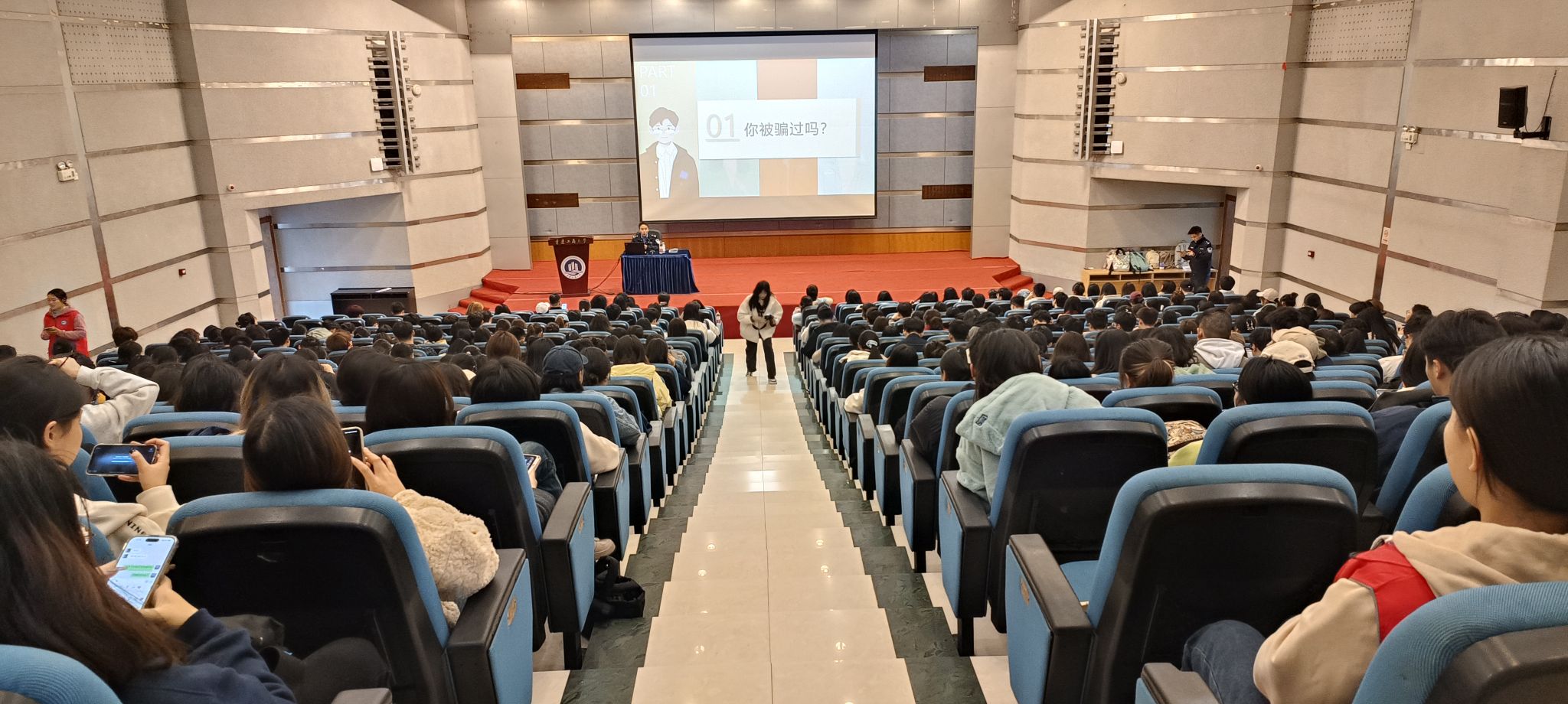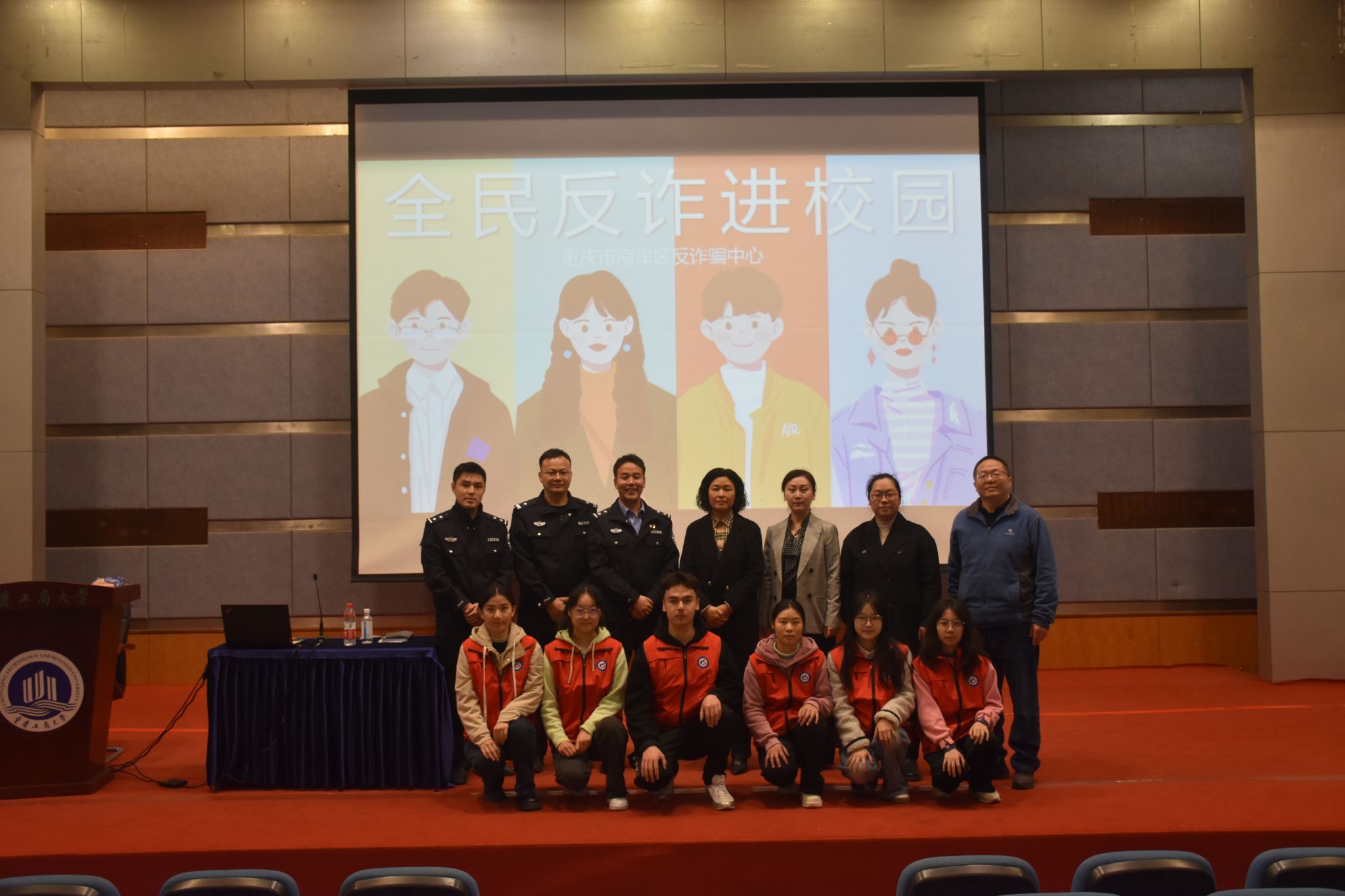 保卫处曹晓丽副处长、员工处林璐副处长、bb贝博艾弗森官方网站郝颖副书记、南岸区反诈中心幸永祥警官、四公里派出所刘国魁警官一同参加了宣讲活动。
