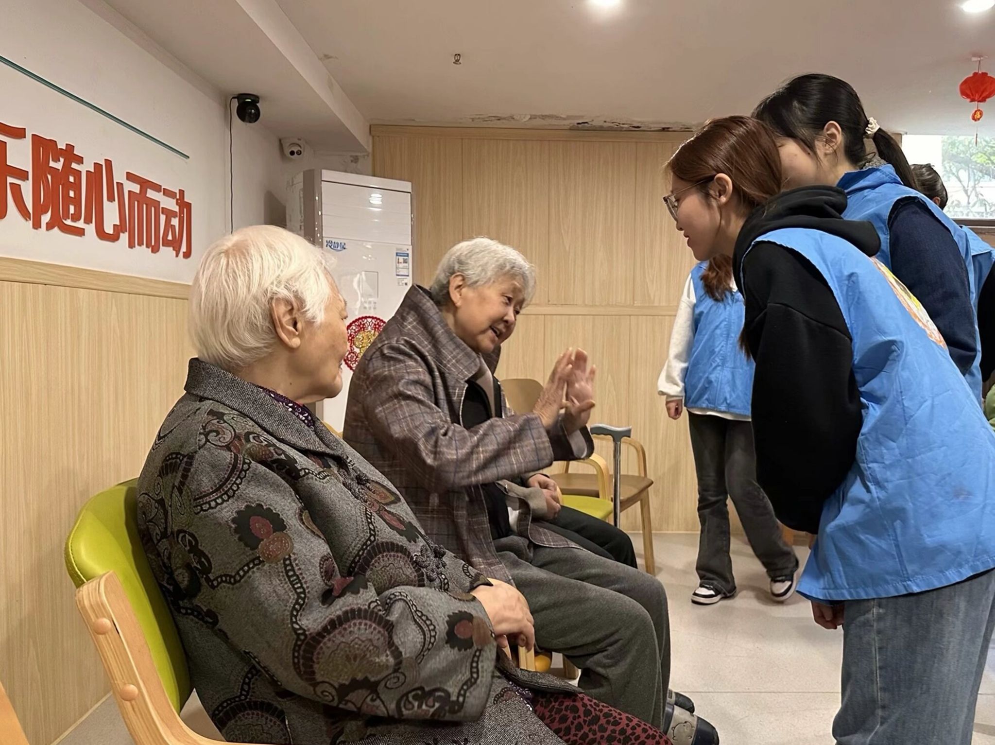 上午九点整,志愿者们到达重庆市渝中区曾家岩敬老院,志愿者们穿戴好马甲,活动正式开始。敬老院活动厅里,老人们围坐在一起,志愿者们主动向老人搭话,拉近彼此的距离,耐心地倾听老人们讲述过去的时光,分享在敬老院的小趣事,不仅使老人摆脱了寂寞,也让年轻的志愿者受益颇多。老人与志愿者们相谈甚欢的画面在春日的暖阳下显得格外温馨,活动厅里洋溢着欢快的气息。