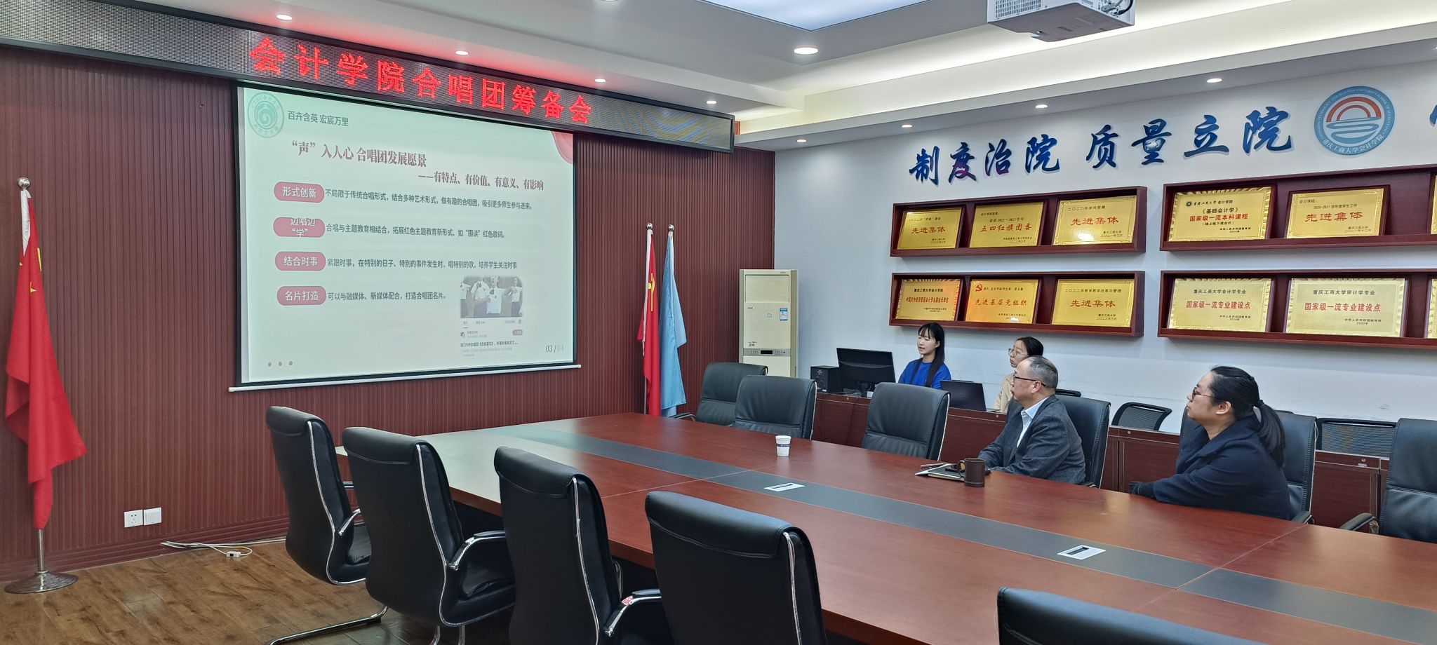 为持续优化公司美育工作,推进学院卉宸艺术团工作,提高艺术团工作质量,3月18日,bb贝博艾弗森官方网站召开美育工作促进会暨合唱团筹备会。公司党委书记邓德敏、党委副书记郝颖、学工办主任彭文涛出席会议,bb贝博艾弗森官方网站卉宸艺术团团长黄子洁,卉宸艺术团部门负责人印璇参加。