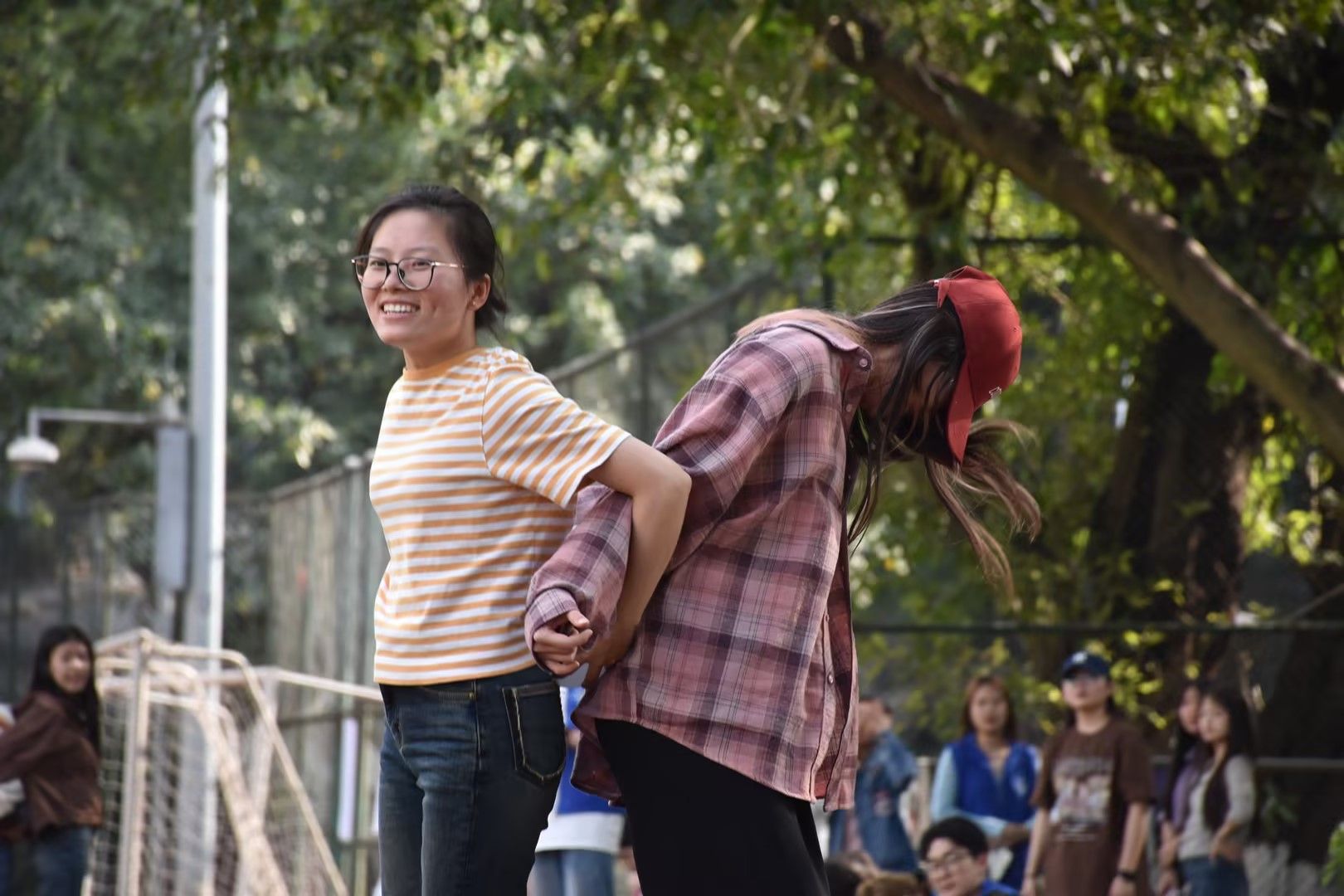 活动伊始,现场分成7支队伍,各组成员相互了解后推选出队长。由主持人介绍活动流程与各环节规则,引导各小组成员参与 “数钱数到手抽筋”热身游戏,然后进入“狭路相逢”和“铁人三项”两个正式游戏。活动过程中充斥着欢声笑语、呐喊助威,各小组成员斗智斗勇,积极投入到游戏中。