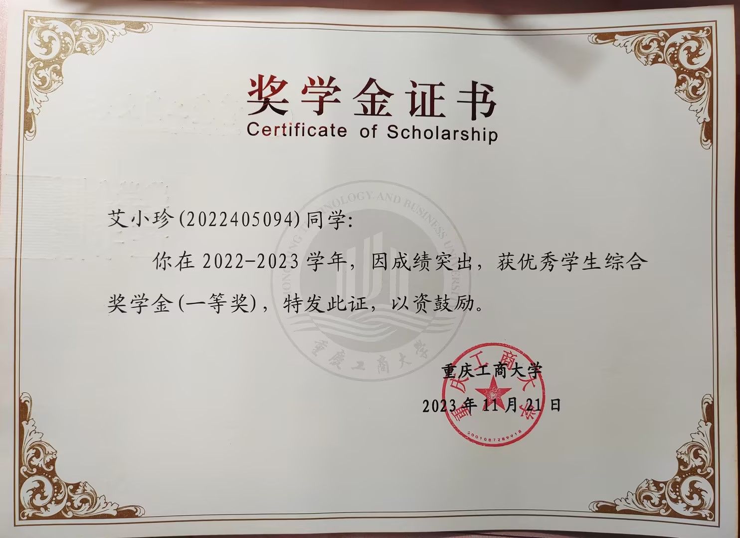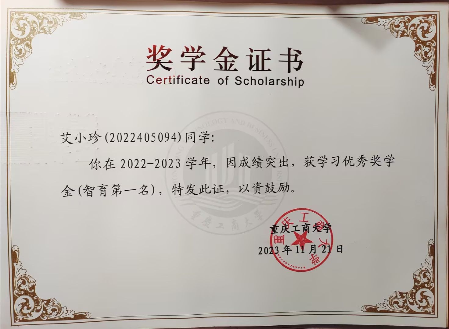 艾小珍,2022级会计一班,平均学分绩点为4.21,专业排名第一,荣获2023年会计之星—“学习之星”称号。入校以来,荣获奖学金、荣誉称号及各类奖项共计20项。其中包括综合一等奖学金、迪马薪火奖学金、学习优秀奖学金、文艺活动奖学金等,以及“优秀员工”、“学习标兵”、“优秀志愿者”、“中华文化知识达人”等荣誉称号,获得第三届”用英语讲中国故事”西南区域二等奖、第三届“用英语讲中国故事”重庆选区三等奖、ballbet贝博官方网站廉洁主题演讲比赛二等奖、ballbet贝博官方网站管理决策模拟大赛二等奖、ballbet贝博官方网站“中华魂”主题教育读书活动之征文比赛二等奖等。已通过四六级和部分专业证书。