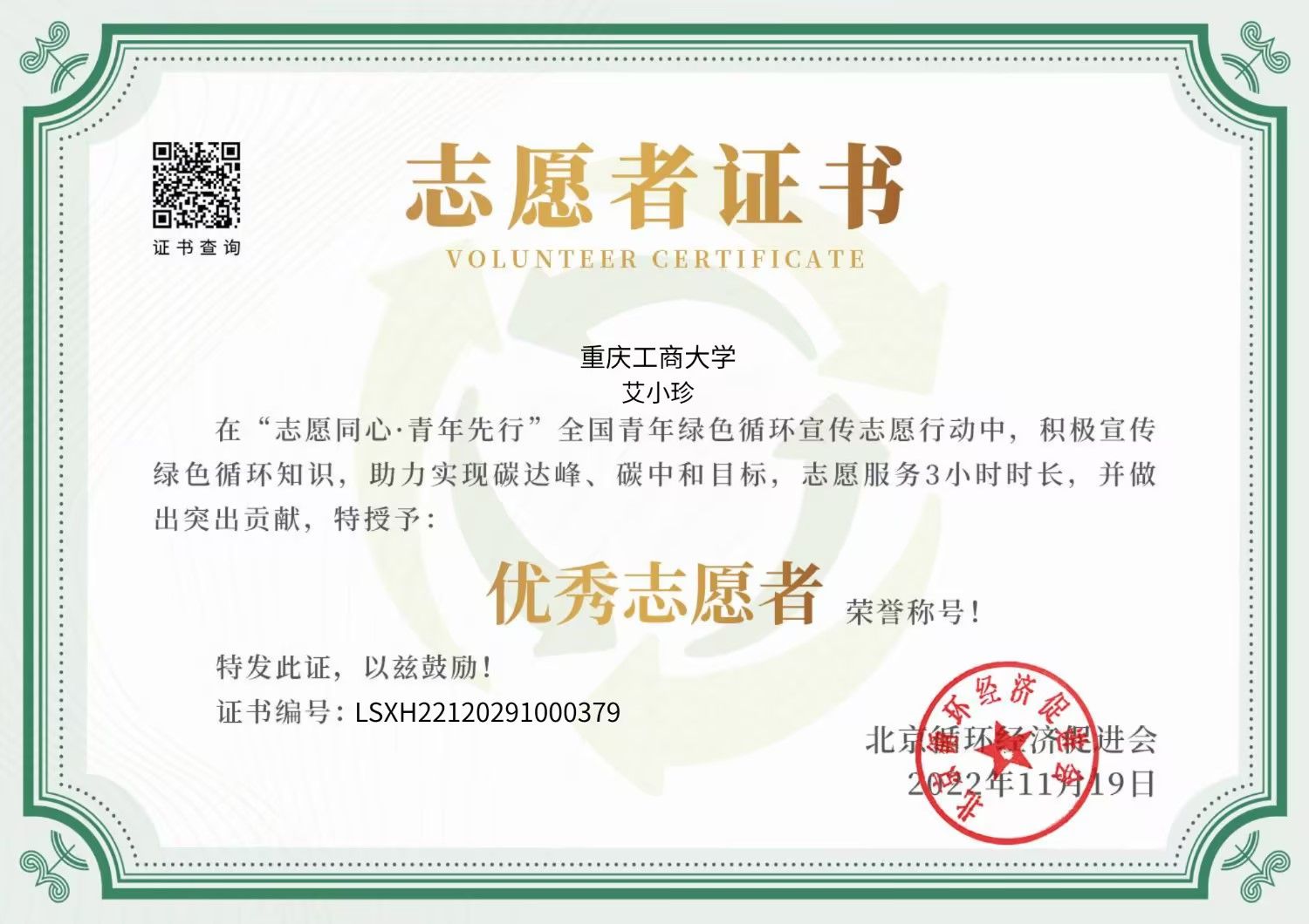 学习之余,艾小珍同学积极参与了一些社区服务项目,包括绿色宣传志愿行动、敬老爱老志愿活动、无偿献血知识普及活动等。通过这些社会实践经验,不仅提升了个人的领导才能和团队协作能力,更激发了她在未来更积极参与社会实践并为社会做贡献的动力。