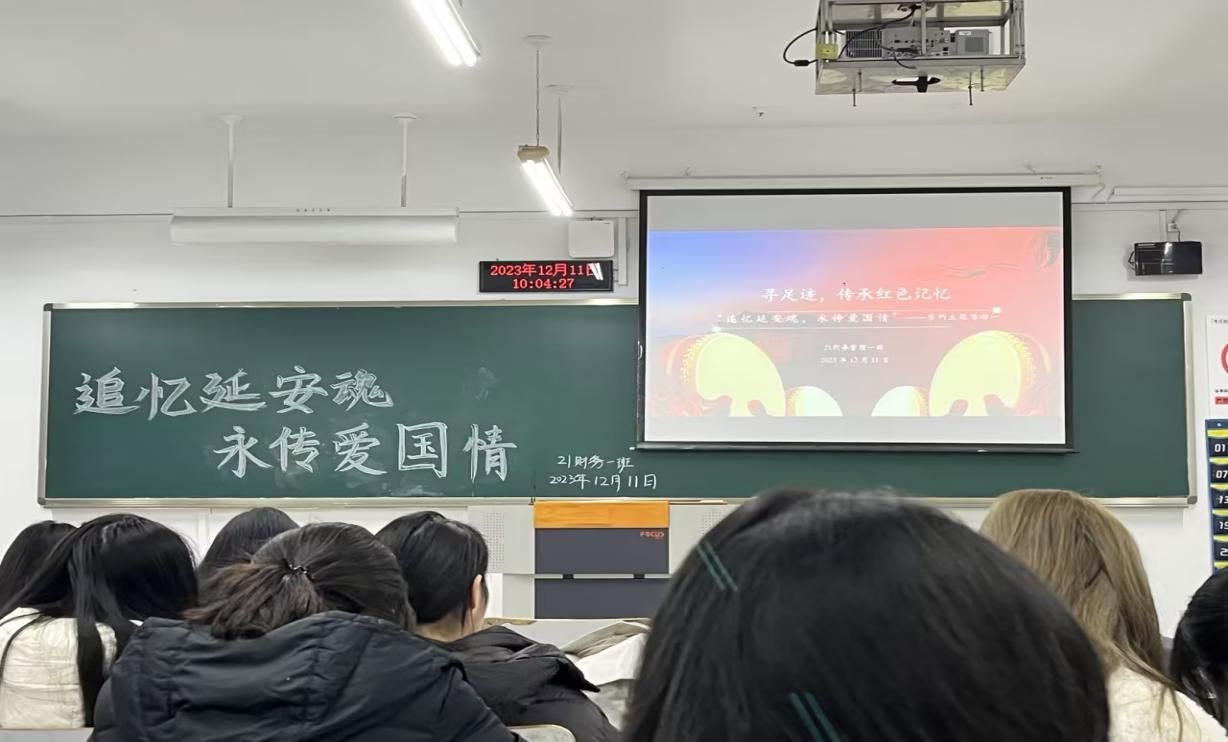 2023年12月11日上午十点,2021级财务管理一班的同学们齐聚7教博智楼310教室,开展了 “追忆延安魂,永传爱国情”系列主题活动。此次活动旨在让同学们更加深入地了解中国共产党的革命历史进程和延安精神,引领班级团员和青年认真学习领悟伟大革命精神,做有理想、敢担当、能吃苦、肯奋斗的新时代青年,以贯彻党的二十大精神为主线,大力弘扬伟大革命精神。