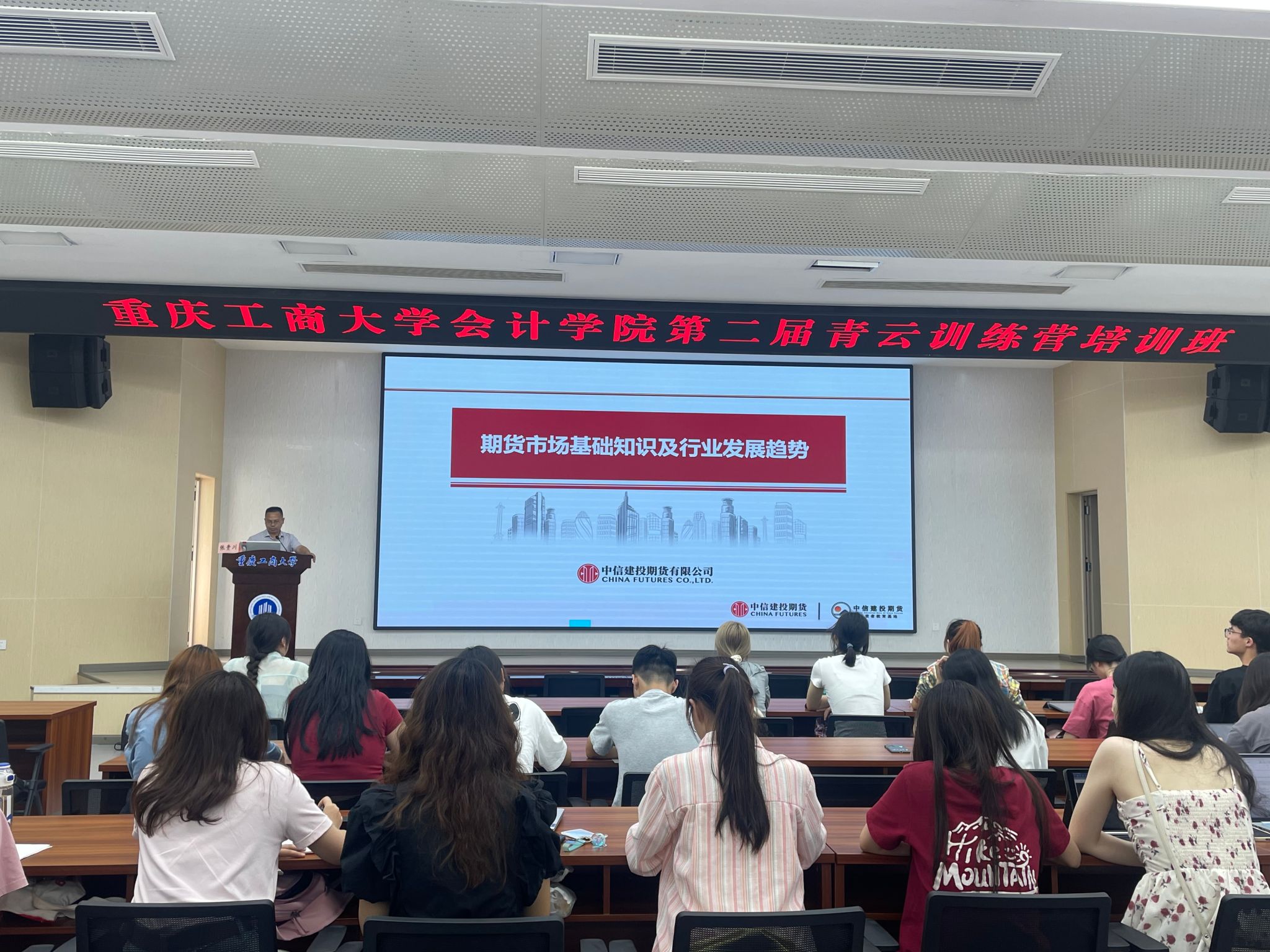 2024年5月31日16:00,bb贝博艾弗森官方网站分团委在明德楼1019室举办bb贝博艾弗森官方网站第二届青云成长训练营第二届第二期“期货市场基础知识及行业发展趋势”专题讲座。中信建投期货有限公司渝北分公司总经理张贵川、分团委书记彭文涛及80名训练营营员参加,仪式由彭文涛主持。