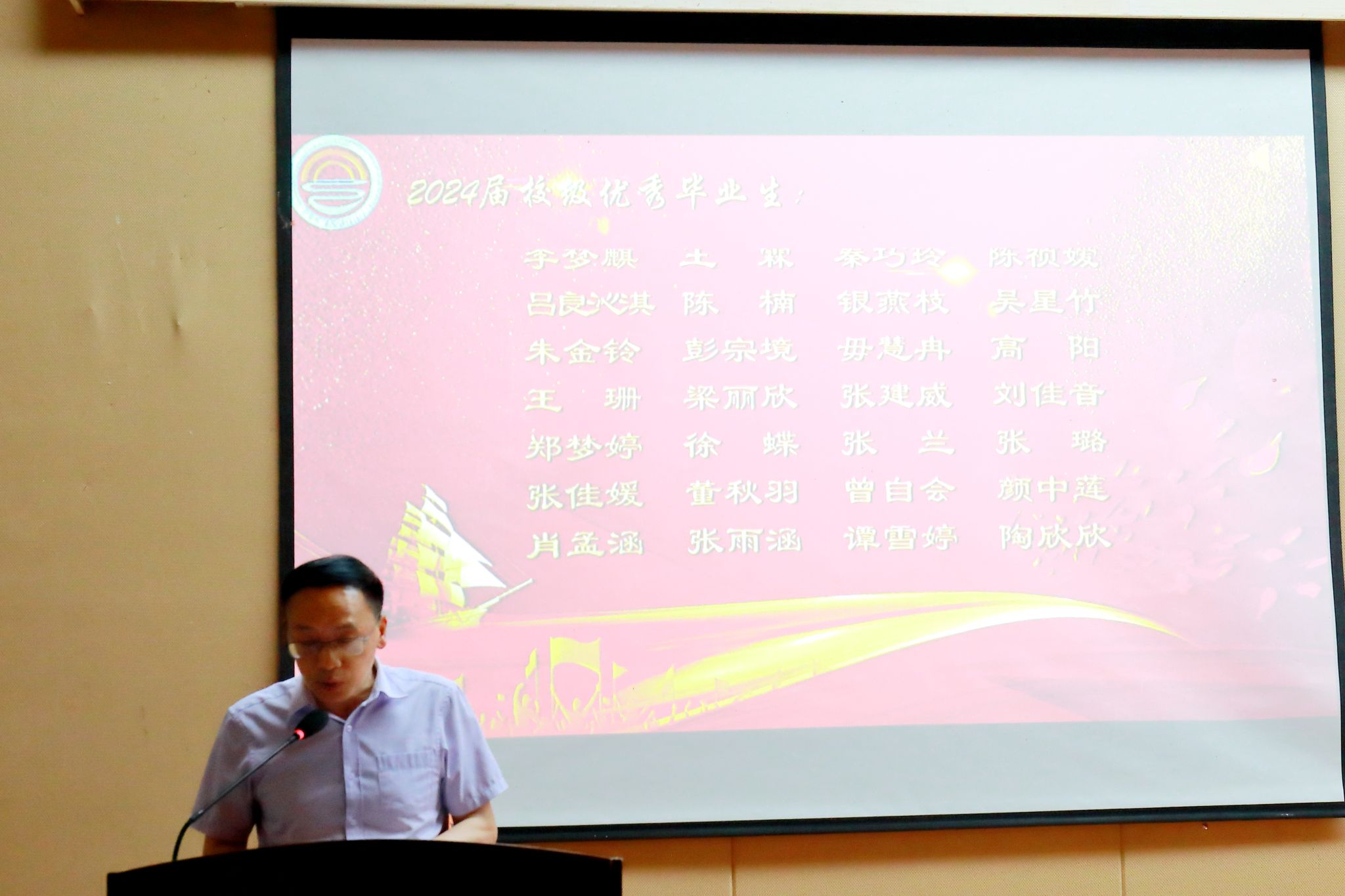 公司正处级专职组织员尹建平、学院副经理钟廷勇分别宣读《关于表彰2024届校级优秀毕业生的决定》、《关于表彰2024届优秀毕业研究生标兵、优秀毕业研究生的决定》并颁奖。
