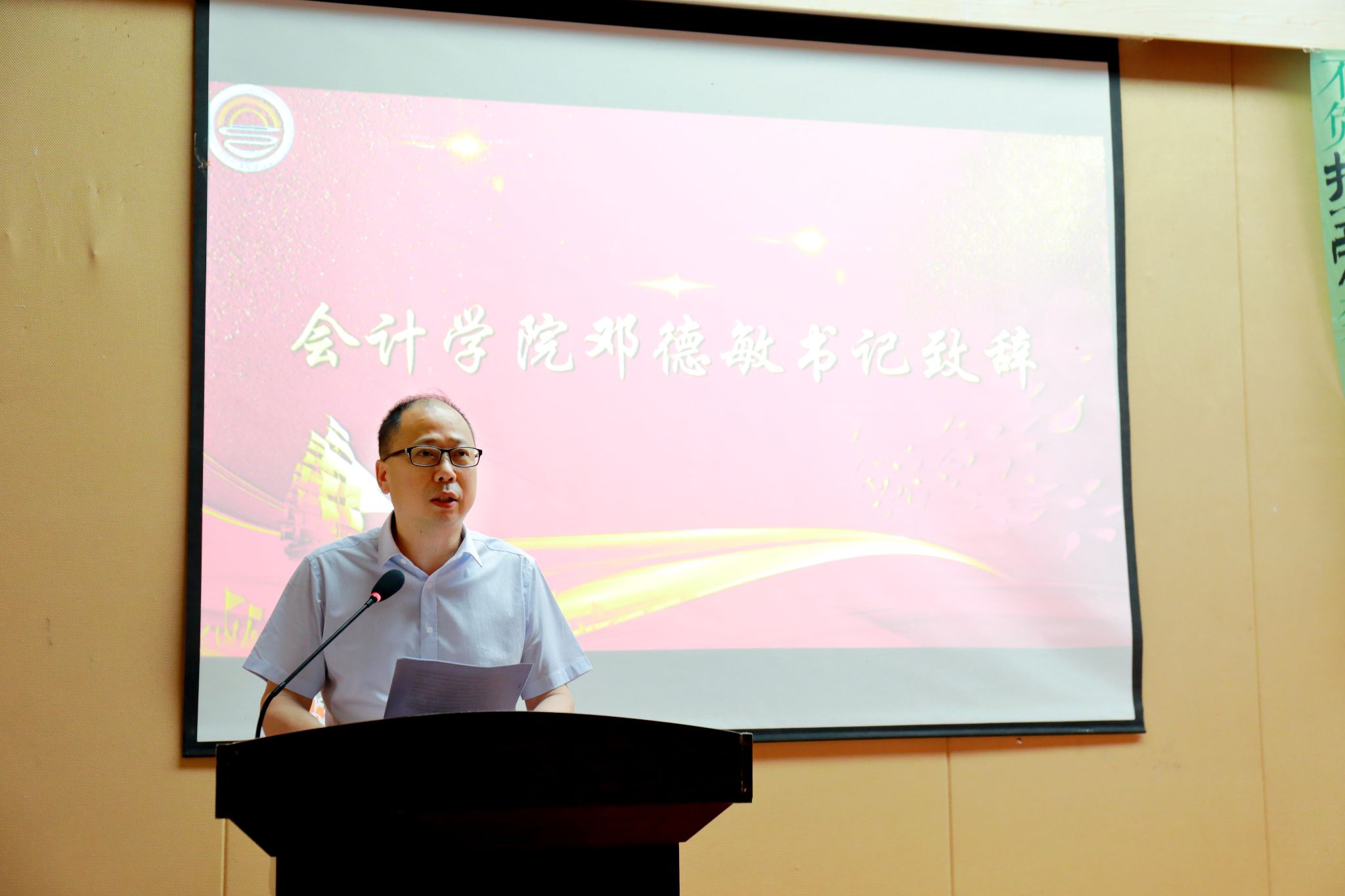 典礼最后,举行了庄重的诚信从业宣誓,全体毕业生举起右手,庄严宣誓,在邓德敏的领誓下,齐声高诵:牢记殷殷嘱托,服务祖国建设;坚守诚信根本,走好会计人生;见贤思齐,崇德励志;坚持准则,守正创新;奉公守法,廉洁自律;敬业守责,敢于斗争;精益求精,理财兴业,富国利民,圆梦中华;为全面建设社会主义现代化国家而努力奋斗!