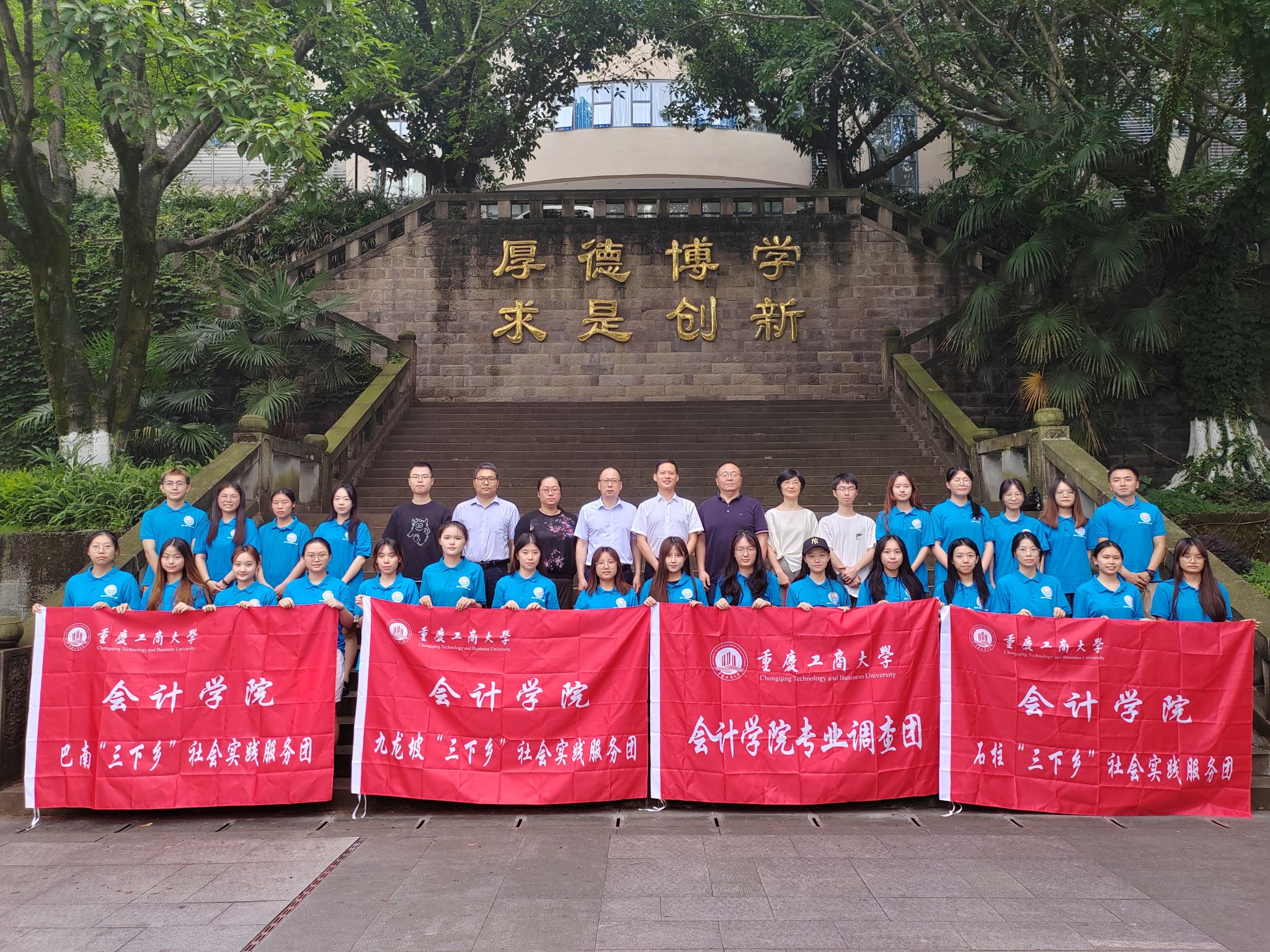bb贝博艾弗森官方网站钟廷勇经理为本次五个暑期“三下乡”社会实践团队授旗并集体合影。