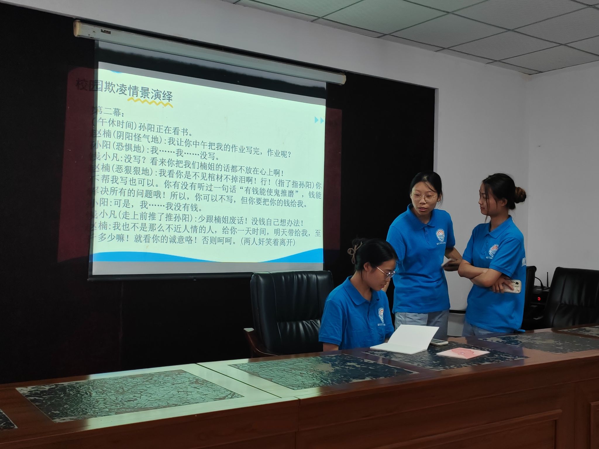 活动伊始,志愿者们通过PPT和生动的讲解,向孩子们普及了什么是校园霸凌、校园霸凌的危害以及如何识别和防范校园霸凌。他们详细解释了言语欺凌、身体欺凌、网络欺凌等多种形式,强调了霸凌行为对个人心理健康和成长的负面影响。为了让孩子们更加直观地理解霸凌行为,志愿者们精心准备了一场情景演绎。他们模拟了校园中可能出现的霸凌场景,如恶意嘲笑、排斥孤立、故意损坏他人财物等,通过角色扮演的方式,让孩子们身临其境地感受到霸凌的危害。演绎过程中有的孩子不自觉地握紧了拳头,表情中透露出对“霸凌者”的不满与愤怒。而当剧情转折,同学们团结一致,用温暖和包容化解了误会,孩子们的脸上重新绽放出笑容,掌声与欢呼声此起彼伏,现场气氛达到了高潮。