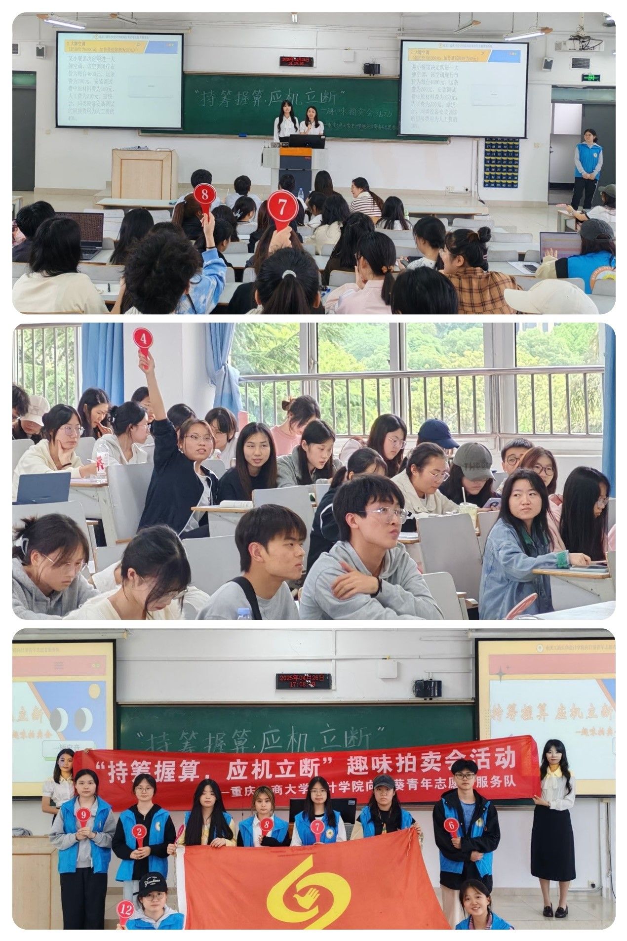 为激发同学们对财会知识的学习兴趣,锻炼其综合分析与团队协作能力,bb贝博艾弗森官方网站向日葵青年志愿者服务队于2025年4月26日在ballbet贝博官方网站南岸校区博智楼07421举办了以“持筹握算,应机立断”为主题的趣味拍卖会活动。