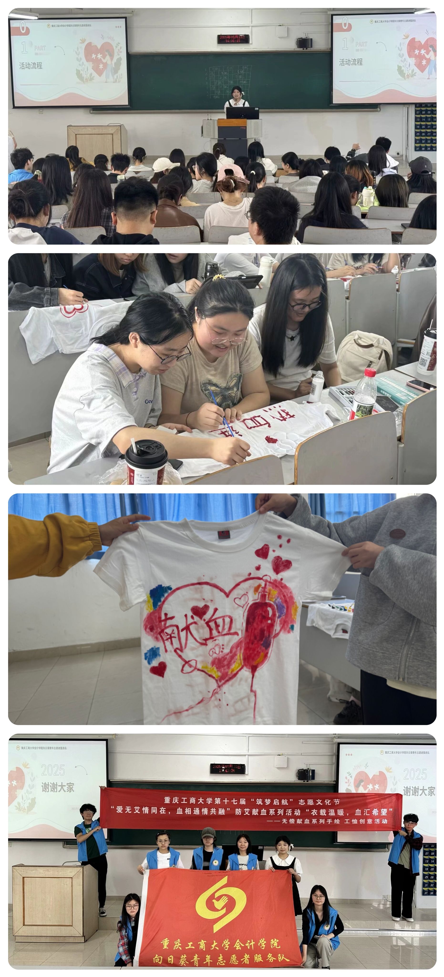 为缓解医疗用血供需矛盾,提升青年群体对无偿献血的认知与参与热情,2025年5月10日至5月16日,由重庆市血液中心、ballbet贝博官方网站校团委联合主办,bb贝博艾弗森官方网站向日葵青年志愿者服务队承办的“衣载温暖,血汇希望”——无偿献血系列手绘T恤创意活动在ballbet贝博官方网站南岸校区博智楼07421开展。活动以“知识科普+艺术创作”的创新形式,吸引广大学子参与,用创意与热血传递生命希望,为构建和谐校园注入青春力量。