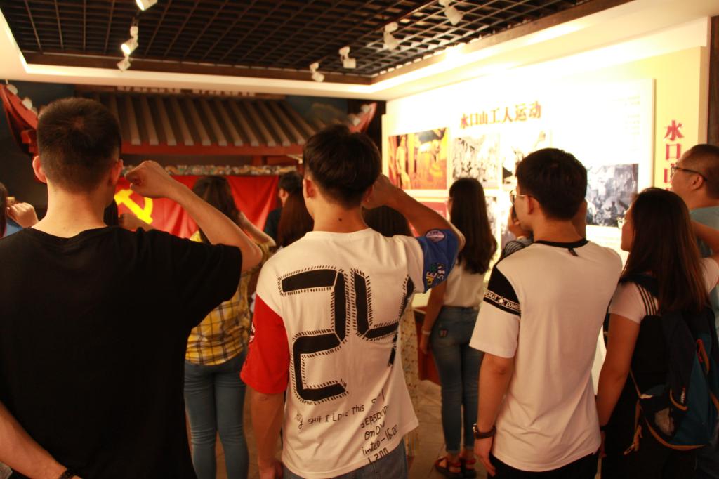 1935年1月19日至1935年5月9日,在中国共产党的统一指挥下,中央红军采取高度机动的运动战方针,四次横渡赤水河,积极寻找战机,有效地调动和歼灭敌人,彻底粉碎了国民党反动派企图围歼红军于川黔滇边境的狂妄计划,取得了战略转移中具有决定意义的胜利,史称“四渡赤水河”。而同学们这一次正是沿着当年红军长征的足迹,感受革命先辈们的伟大与无私。赤水市丙安古镇,是红军当时“一渡赤水”的落脚点,同学们在老师的带领下,怀着无比敬畏的心情参观了这一古镇,镇上丙安红一军团博物馆中,陈列着许多红军当年的衣食住行的用具。在那么艰苦的环境下,革命先烈们用他们的执着和信念赢得了胜利,为我们今天的幸福生活打下基础,想到这里,同学们的心中不禁泛起了波澜。博物馆中,还放置了一只党旗,在鲜艳的党旗下,尹书记带领着党员们重温了入党誓词,诠释了“不忘初心,方得始终”的意义。