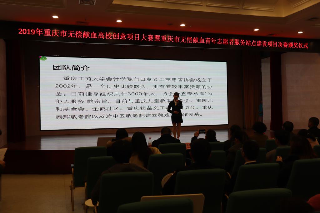2019年12月19日,由重庆团市委、重庆市卫健委为指导单位,市志愿服务工作指导中心、市血液中心、市青年志愿者协会及重庆市南岸区益友公益发展中心共同举办的2019年重庆市无偿献血高校创意项目大赛在ballbet贝博官方网站融智学院顺利开展。