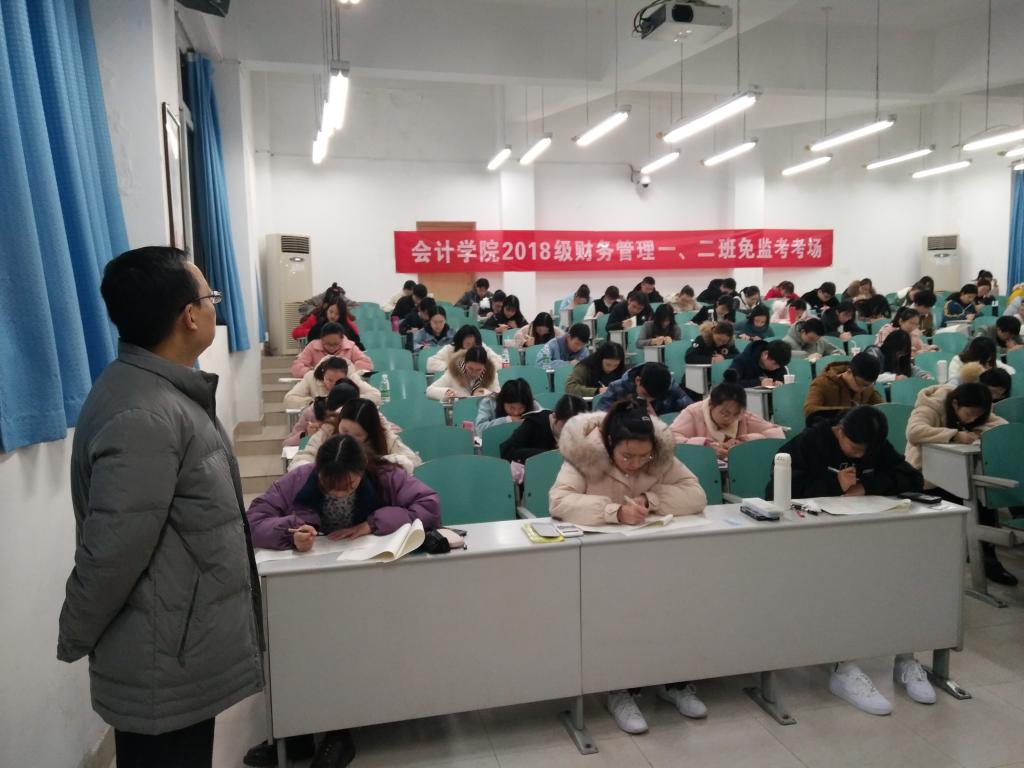 为进一步营造学院良好学风和考风,加强对员工的诚信职业道德教育,bb贝博艾弗森官方网站2018级会计学专业、财务管理专业、审计学专业、资产评估专业,共计396名员工自愿申请了本学期期末考试的免监考,并分别于2019年12月30日在博智楼7106、7122和7107、7121等教室进行了成本会计学(A)双语、管理会计学、审计学等科目的诚信“免监考”考试。学校宋豫副董事长、员工处石世明处长、bb贝博艾弗森官方网站分党委罗惠玉书记、尹建平副书记、黄辉副经理等领导进行了巡考。