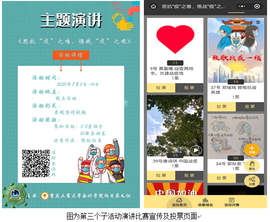 8月5日,第三个子活动“思抗疫之难,悟战疫之艰”演讲大赛接力开展。本次活动历时10天,共收到了42份来自bb贝博艾弗森官方网站同学们的演讲作品。同学们用视频的形式记录疫情防控期间的点点滴滴,结合习近平新青年讲话精神,用演讲的方式抒家国情怀,感受那些“最美逆行者”的无畏与勇毅,亲身体悟在中国共产党的领导下中国人民团结一心抗击疫情的决心和努力。